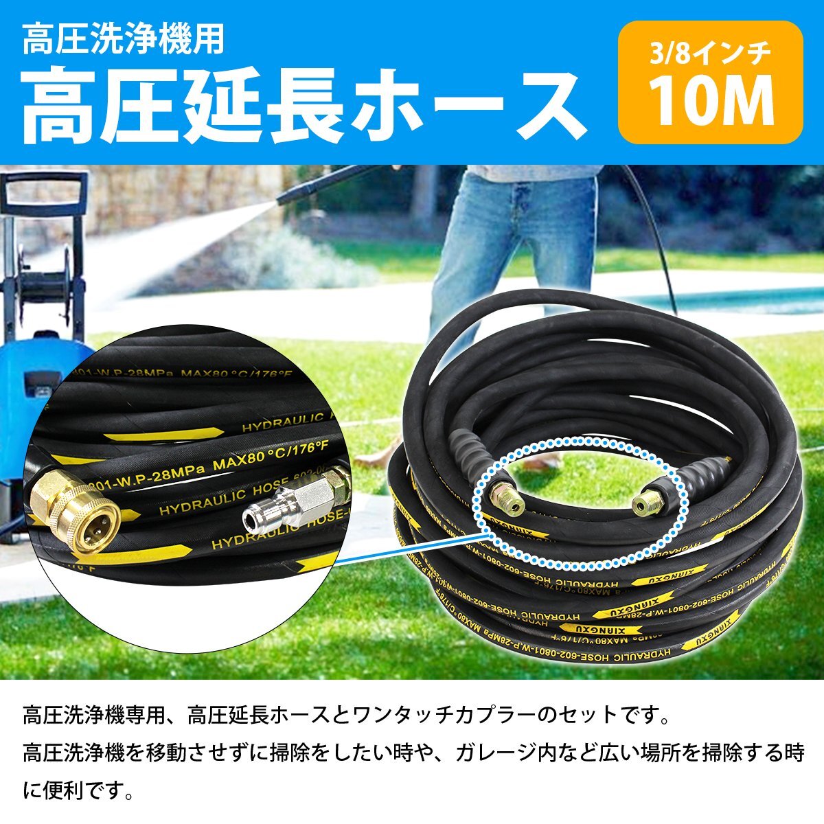 『10m』 高圧洗浄機用 高圧 ホース 3分 3/8 業務用 エンジン式 高圧洗浄機 延長 10メートル ワンタッチ 海外カプラー付属