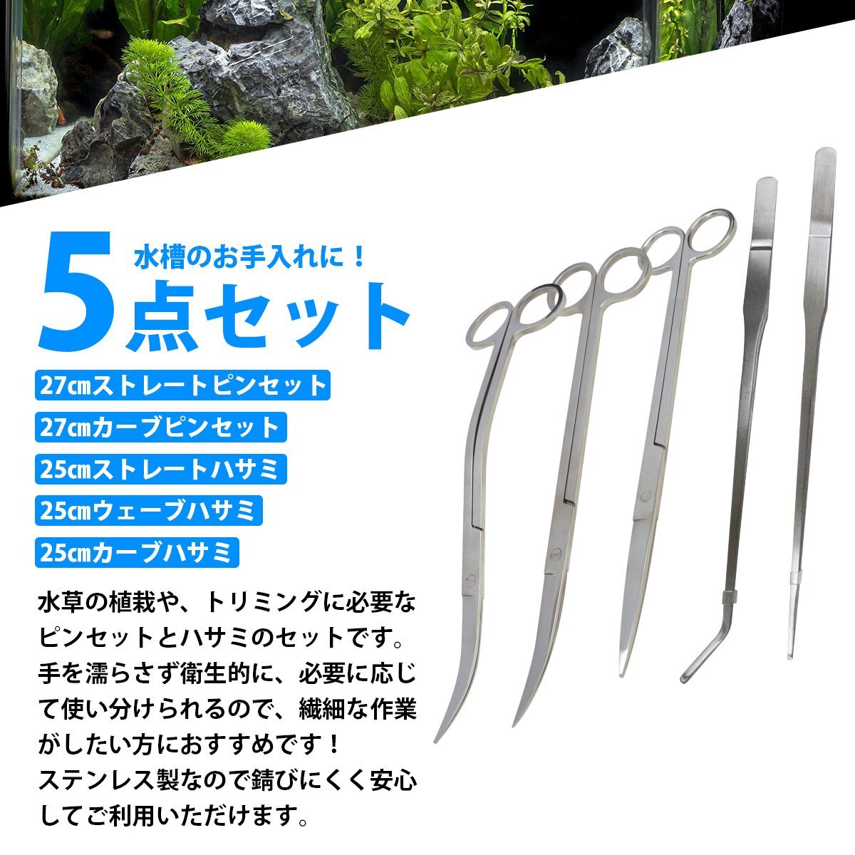 5点セット 『 27cm 270mm ピンセット 2種類 & 25cm 250mm ハサミ 3種類 』 水槽 水草トリミングキット