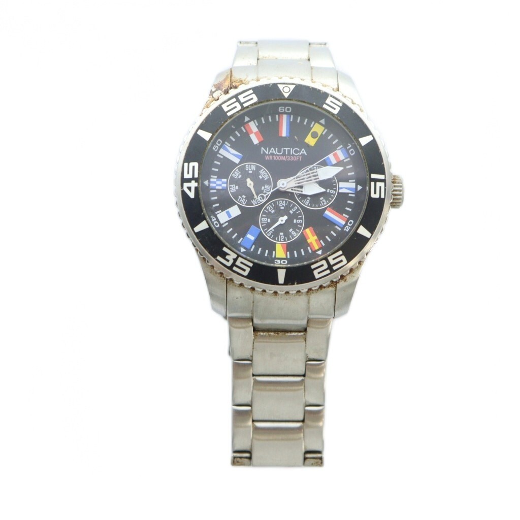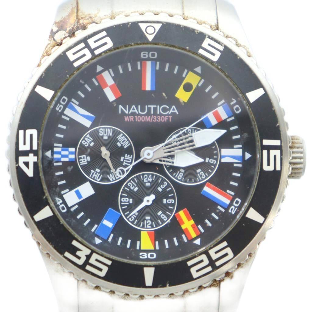 ノーティカ NAUTICA ジャンク品 A14631G 腕時計 ウォッチ クォーツ 黒文字盤 ロゴ クロノグラフ シルバー色 ■GY18 /MQ メンズ
