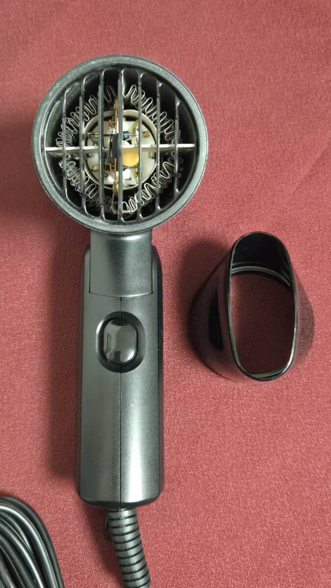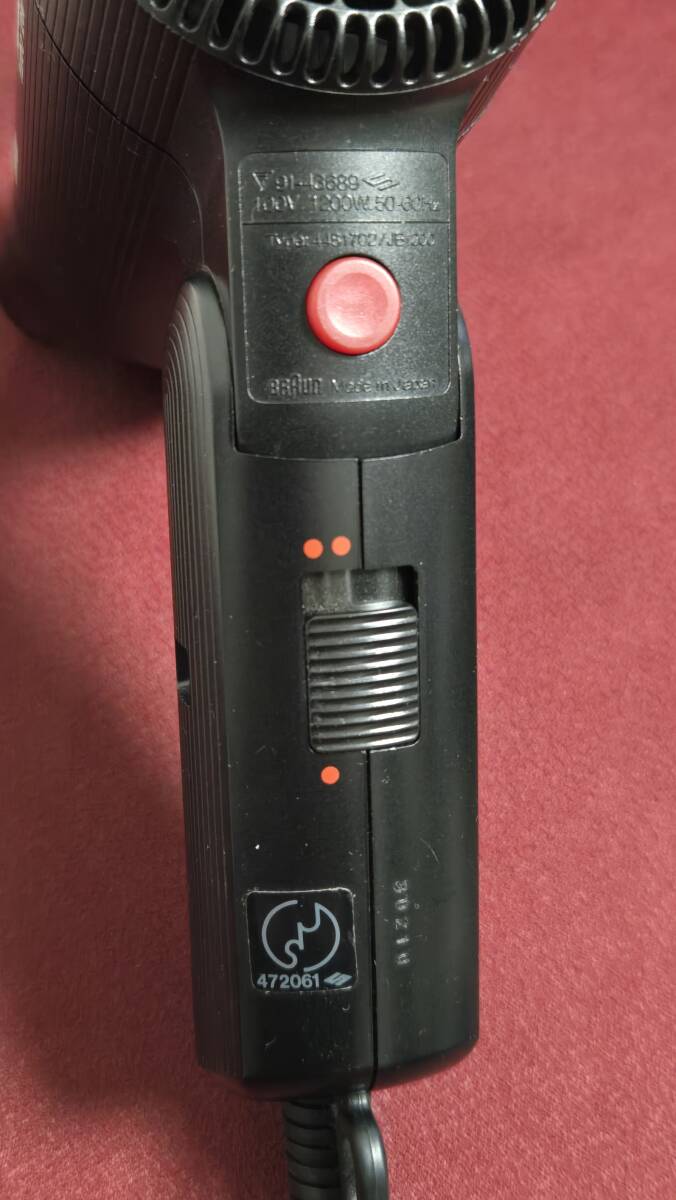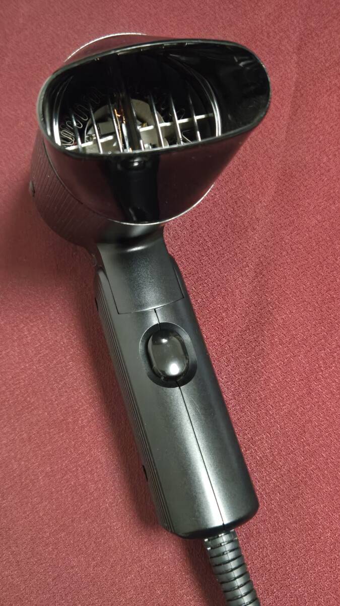 小型ですが風量・熱量も十分あります、持ち手の背面に赤いスイッチがありますが