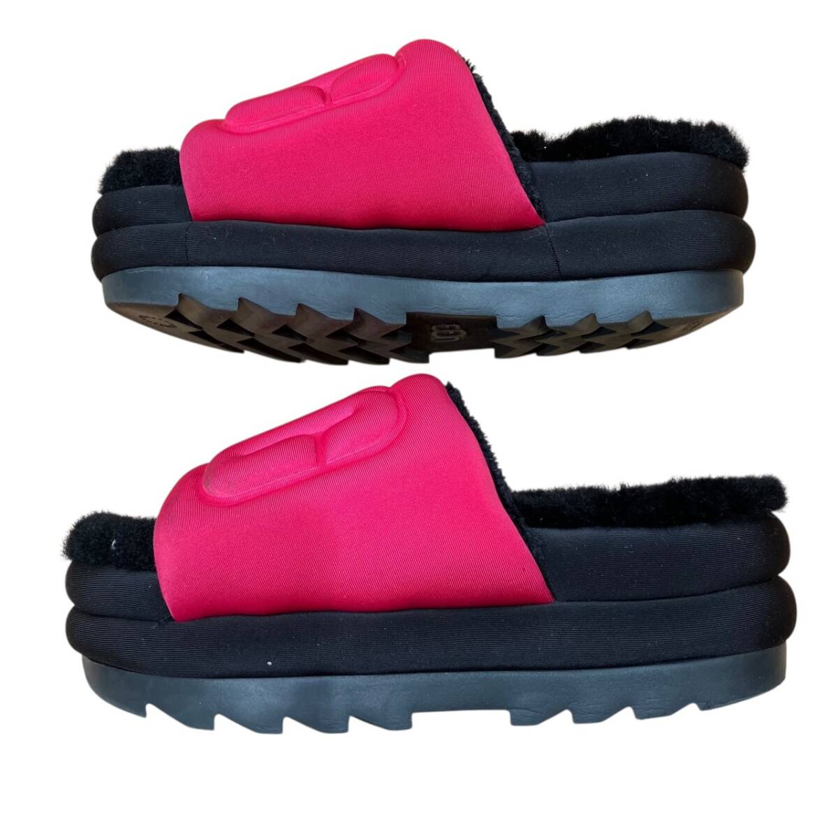| UGG アグ 厚底 サンダル Maxi Graphic Slide ストレッチテキスタイル 黒×ピンク US5 JP22cm レディース |