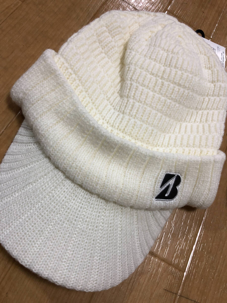 ・スピード発送 新品未使用 BRIDGESTONE GOLF(ブリヂストンゴルフ) 秋冬 刺ロゴ 保温 ツバ付きニットキャップ CPWG39(WH)