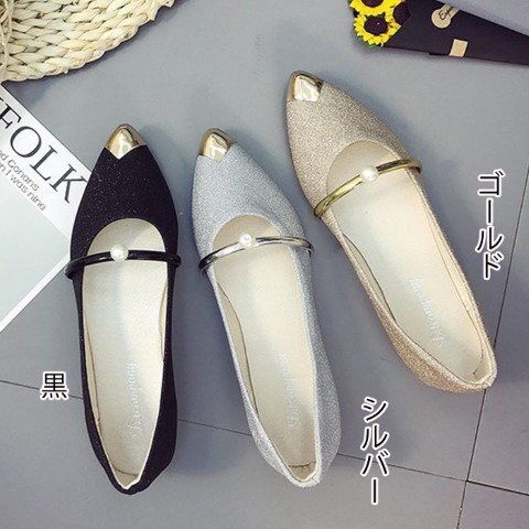 レディース パンプス ミュール 靴 サンダル ポインテッドトゥ キラキラ パール ラメ 23.5cm(37) ゴールド