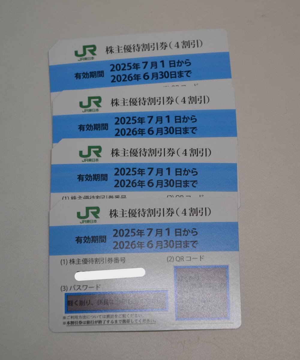 JR東日本 株主優待割引券4枚セット 2026.06.30までです。