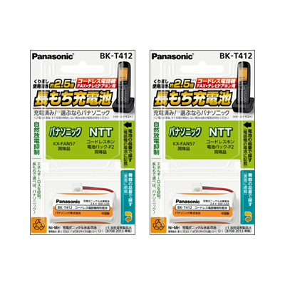 パナソニック充電池 BK-T412 子機用電池 (KX-FAN57 同等品) 超高性能 約2.5倍品!★2個セット★未開封 R