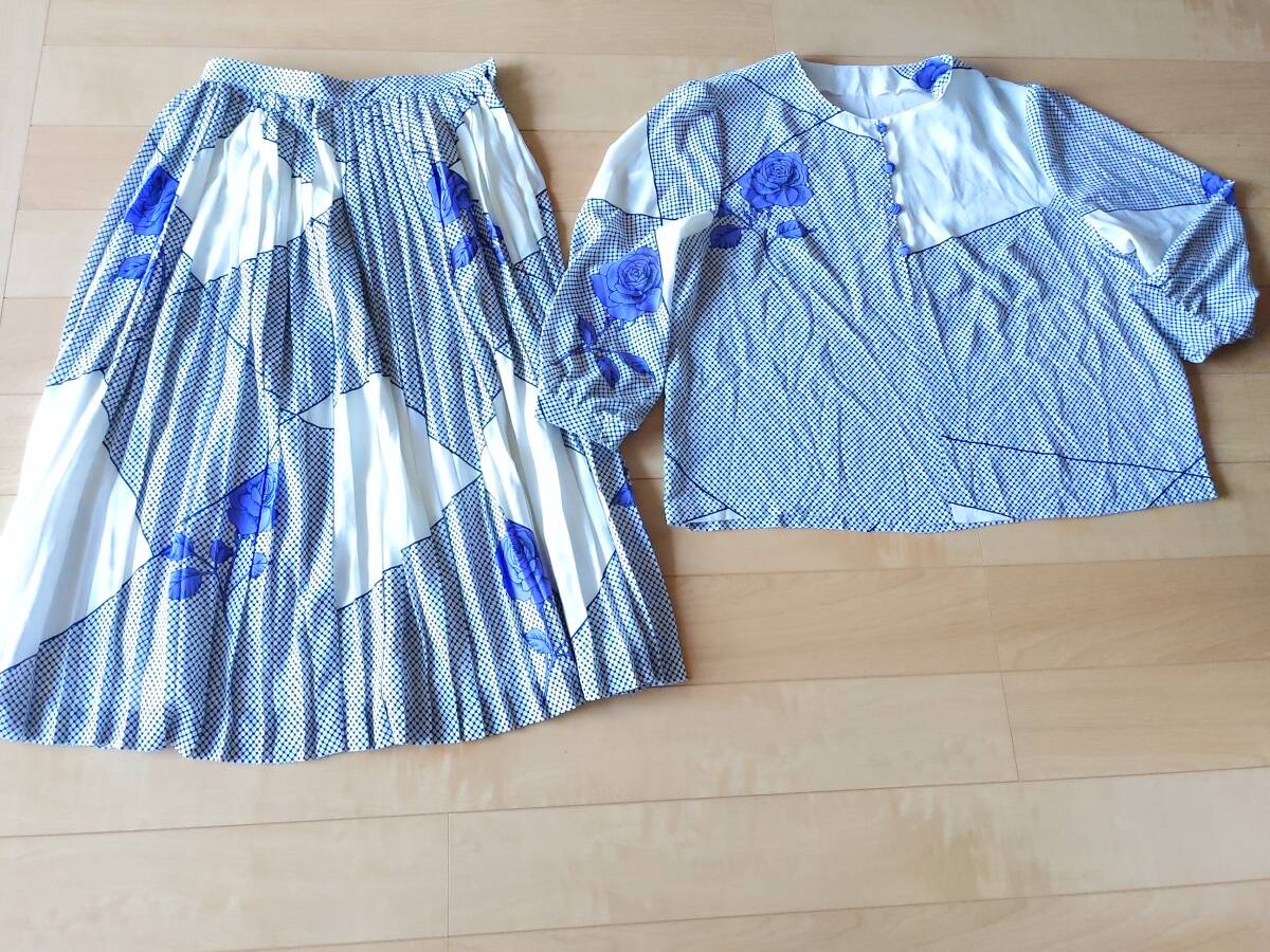 即決★送料無料★スーツ/セットアップ ★個性派バラ【長袖ブラウス+ギャザースカート】ウエスト61★エレガント!*白.紺.紫●オーダーメイド