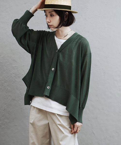 6482 apartment department サイドフレアライン カーディガン グリーン