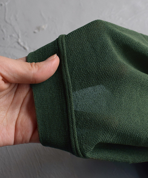 天竺編みを裏目使いしているので糸のつなぎ目で節が出る部分がありますが、編地と素材の特性としてお楽しみください。