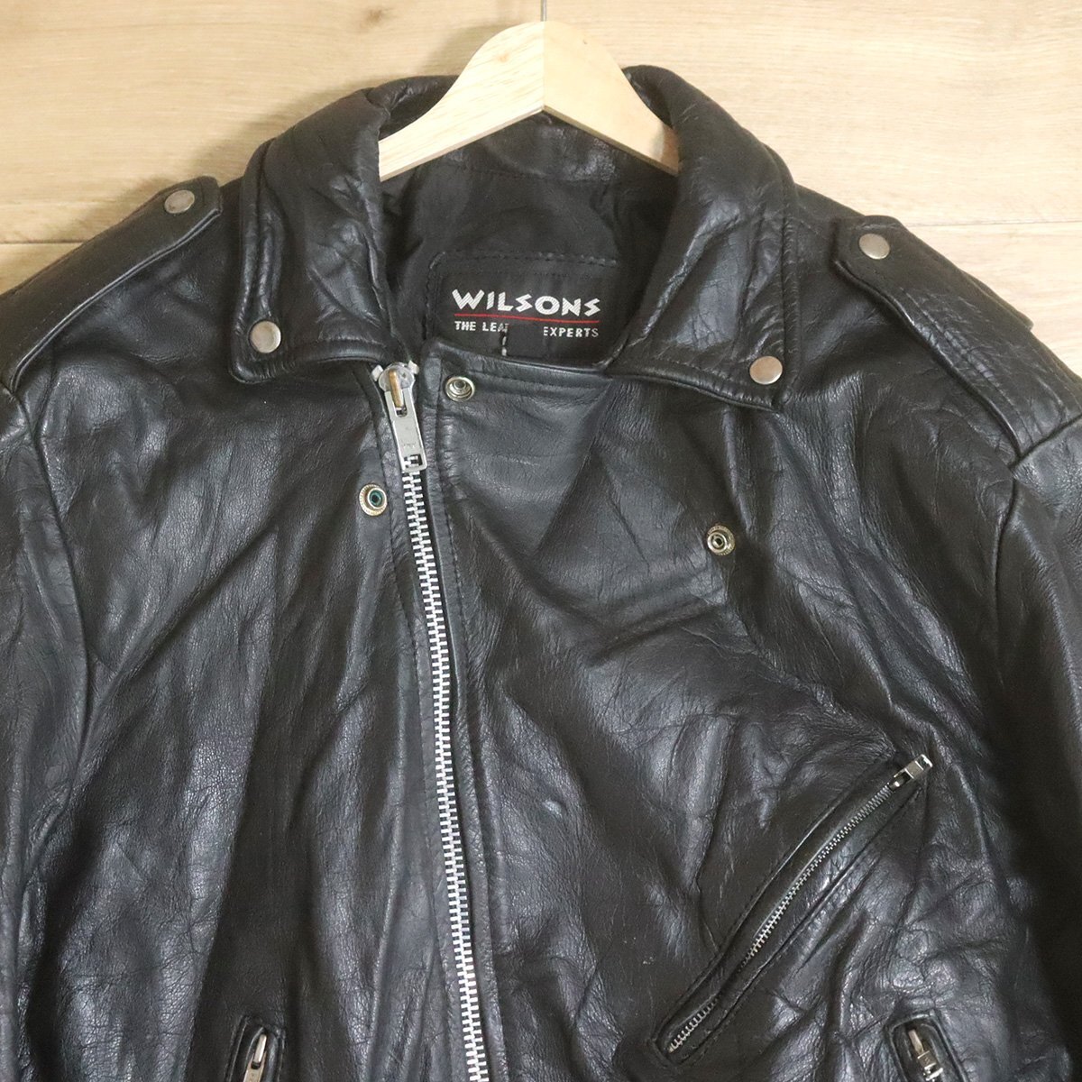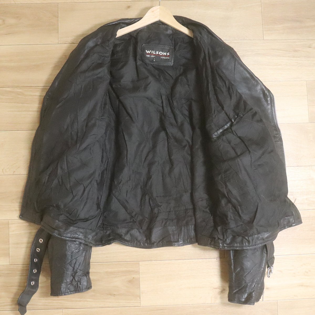 G8R/O8.28-6 WILSONS ダブルライダース 本革 レザージャケット 革ジャン 皮ジャン バイカー XL ブラック アメリカ古着