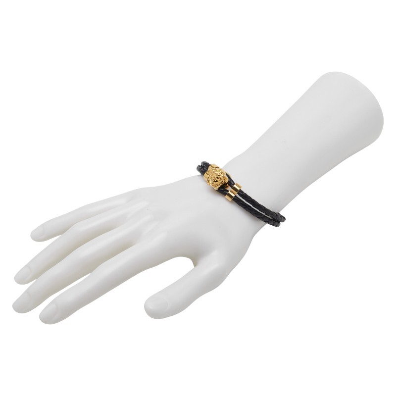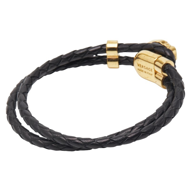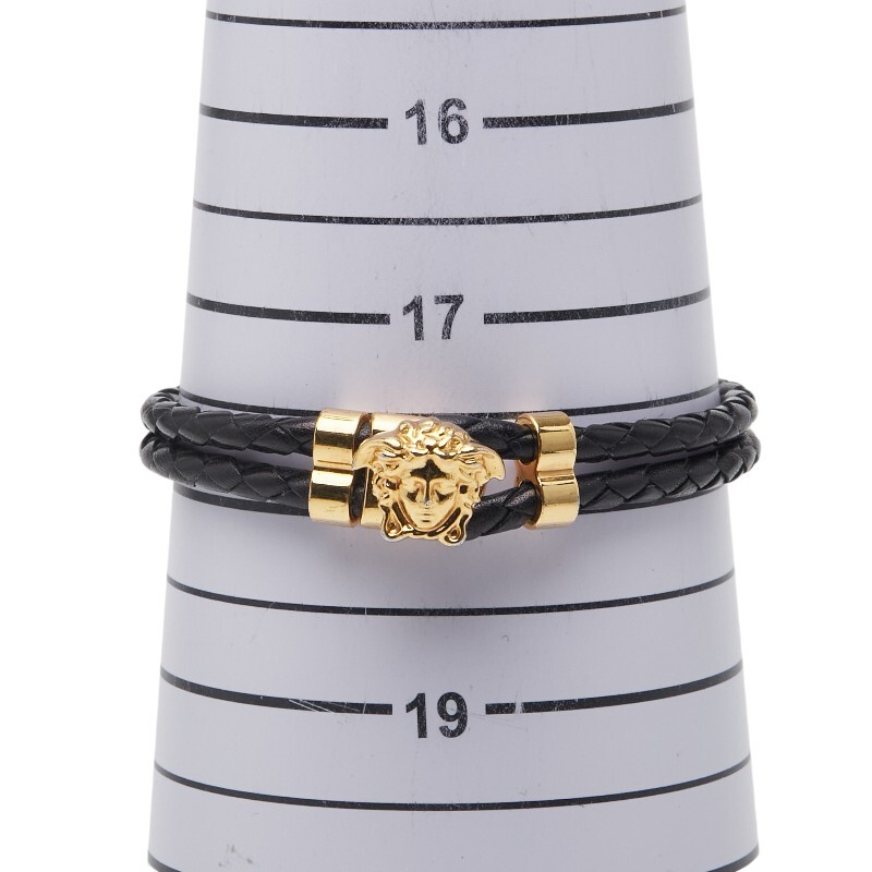ヴェルサーチェ メデューサ ブレスレット ブラック ゴールド レザー メッキ レディース VERSACE 【中古】