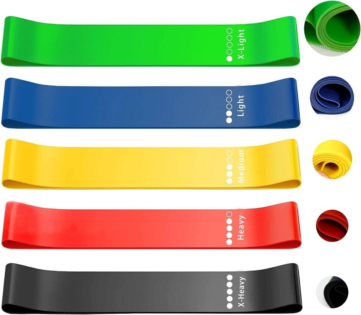 • 初心者でも始めやすい5つの負荷強度】 強度は色によって異なり、それぞれ緑(最弱)-青(弱)-黄色(普通)-赤(強)-黒(最強)となっています。負荷は5種類から選べるので自分に合った強度でトレーニングできます。