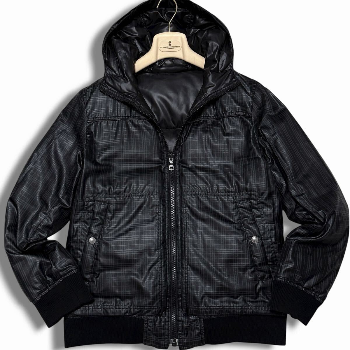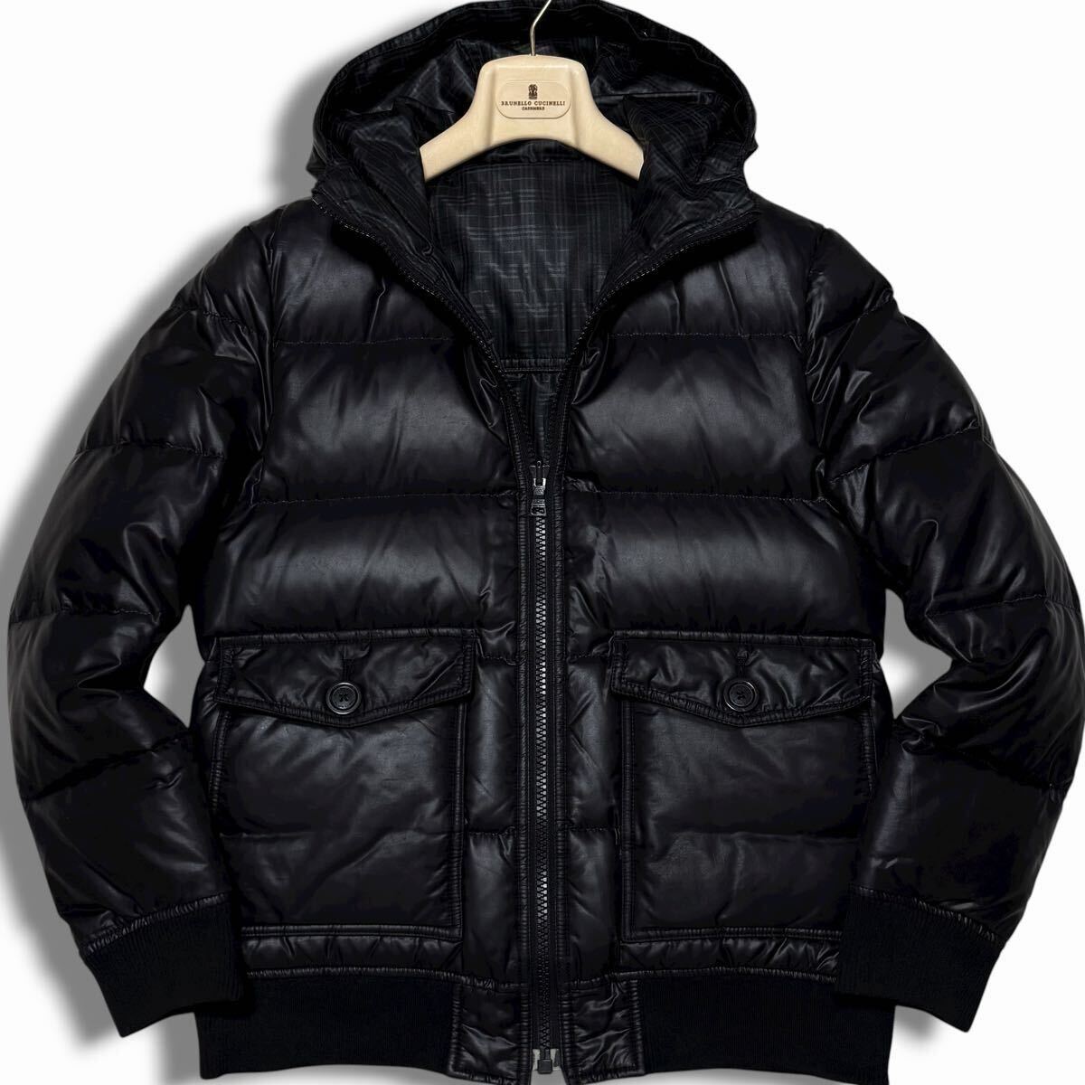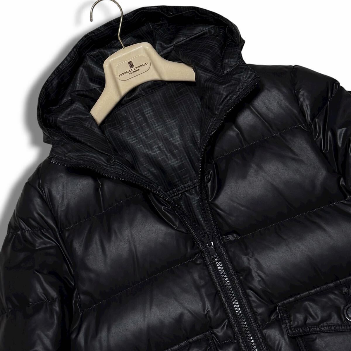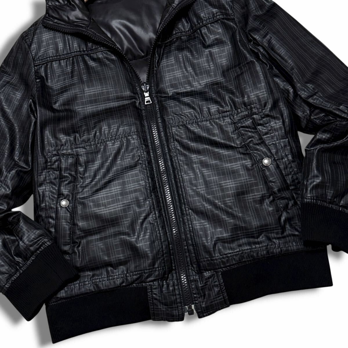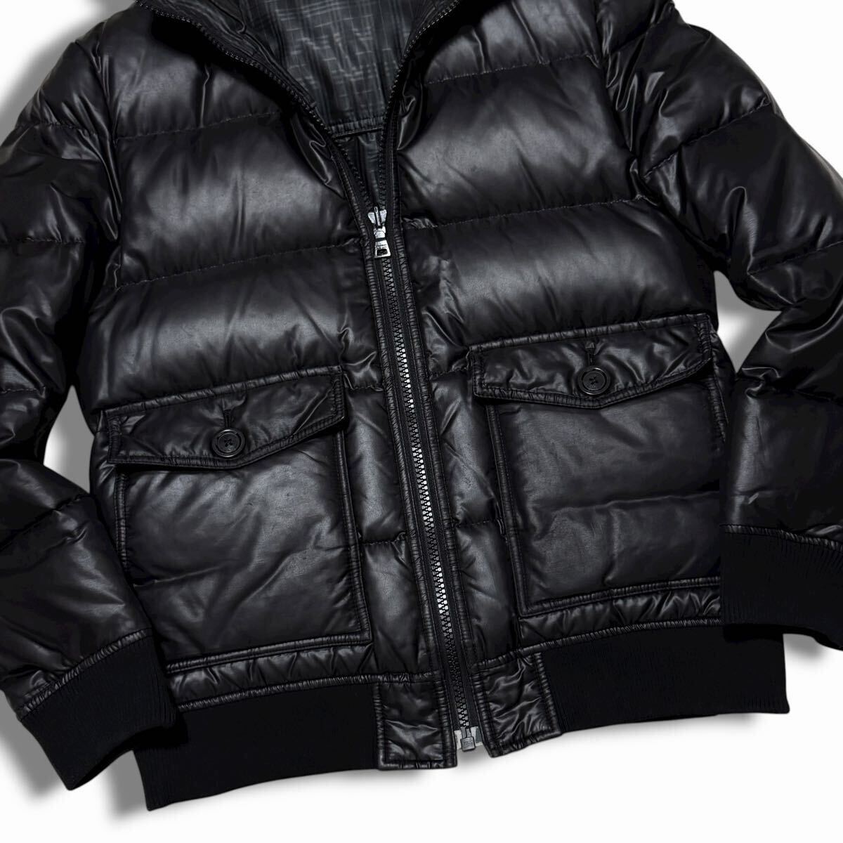 バーバリー ブラックレーベルが持つ英国の品格と、モードな艶感を融合させたリバーシブル仕様の2WAYダウンジャケット。面によって異なる表情を見せる設計で、片面はシャドーチェックがほのかに浮かび上がる洗練されたテクスチャー、もう片面はラグジュアリーな艶ブラックが放つ圧倒的存在感。スタイリング次第で“知的な大人”にも“色気漂う都会的スタイル”にも着こなせる、極めて完成度の高い一着です。