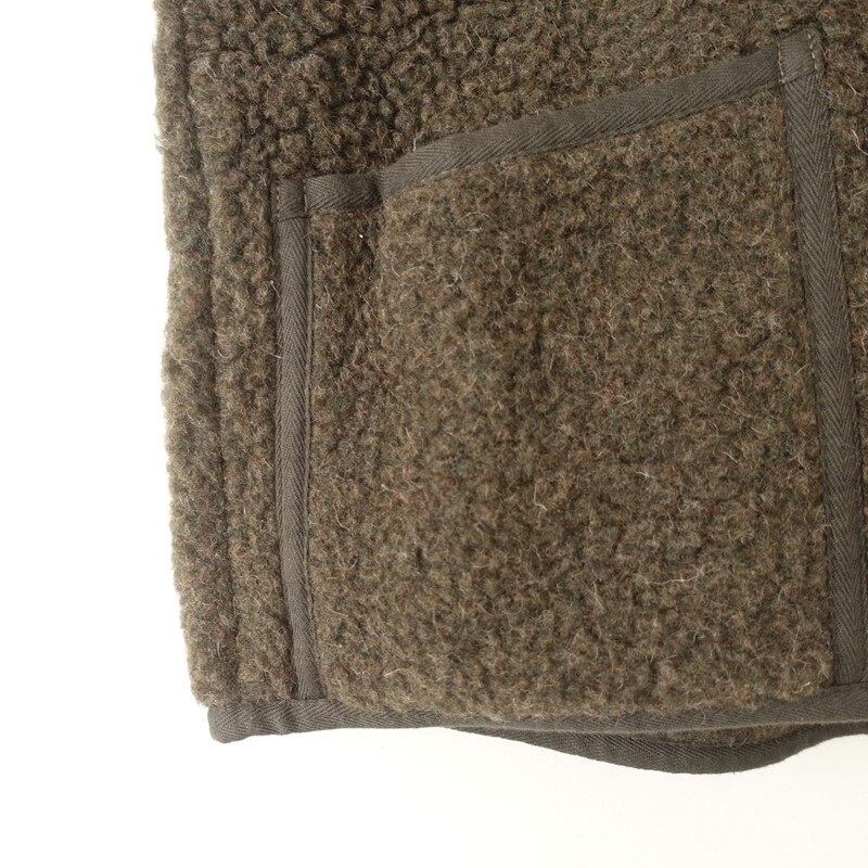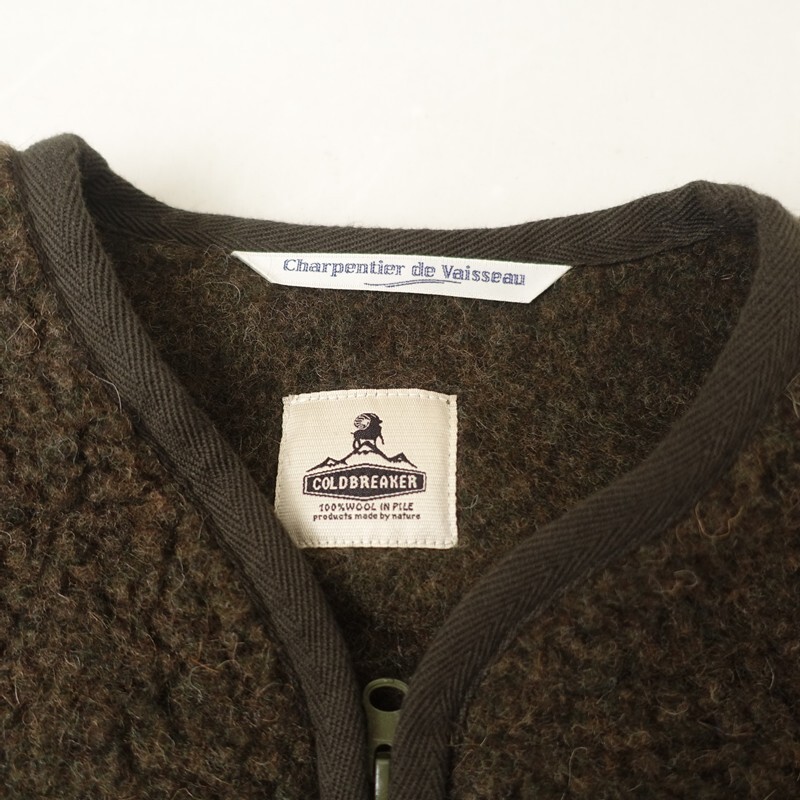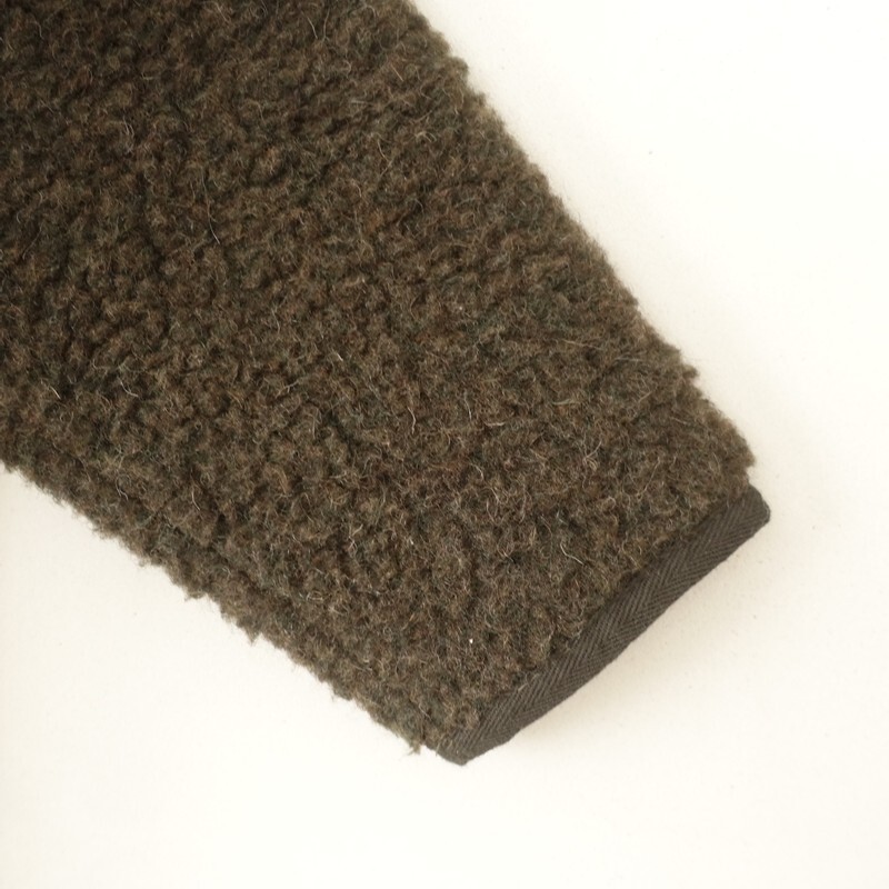 | Charpentier de vaisseau×COLDBREAKERのボアジャケットです。カラーはダークカーキで、ボア素材で仕立てられています。フロントはダブルジッパー開閉で、パイピングがあしらわれ、両サイドにポケット付きです。 |