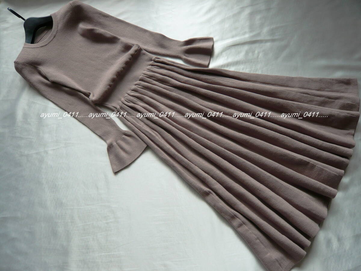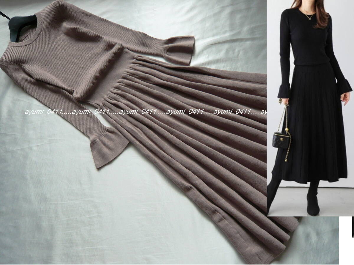 La-gemmeのモカベージュ系・フレアースリーブ ウエスト切替 リブニットワンピースです♪