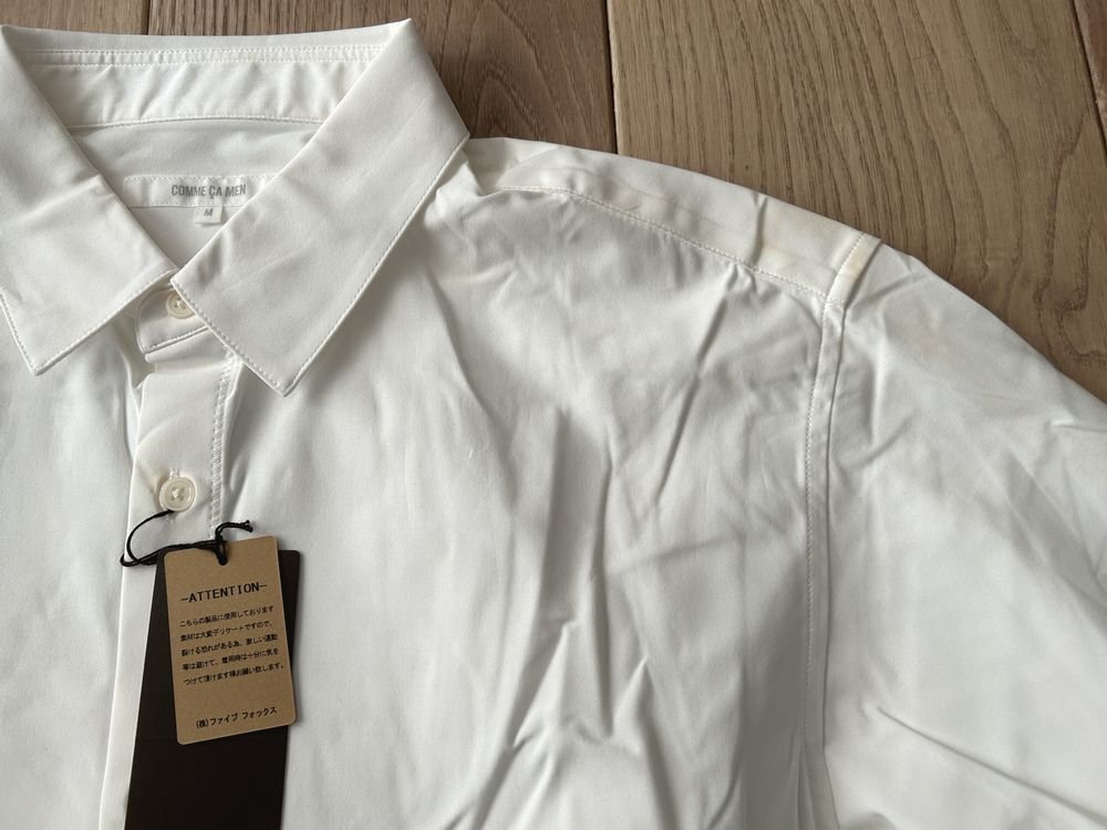 新品訳有り COMME CA MEN コムサメン プレーディング2WAYストレッチ レギュラーカラーシャツ 01ホワイト Mサイズ 19II04 定価19,800円