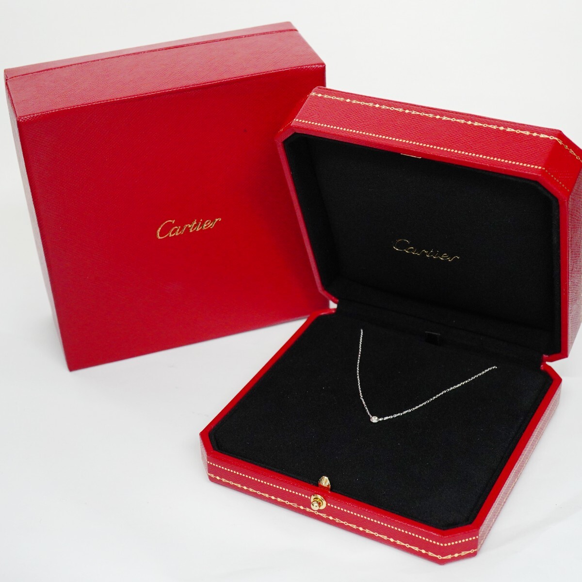 【5job0150】カルティエ ネックレス ダムール XS/1PD K18WG ホワイトゴールド ダイヤモンド【中古】レディース