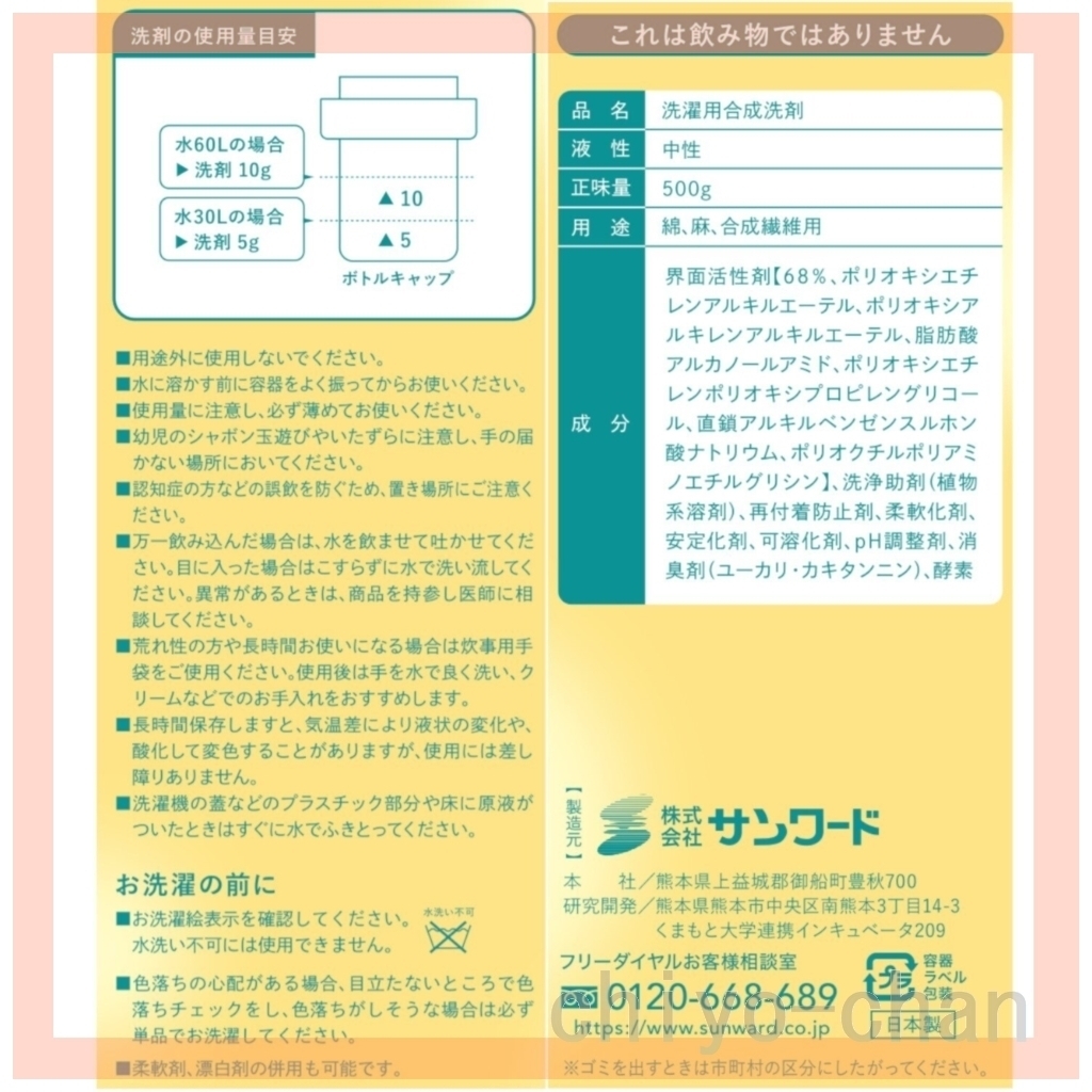 水溶性、不溶性、油性の汚れを一度に落とせる洗浄力が魅力! 洗濯時間が短縮でき、すすぎ1回 でもOK。