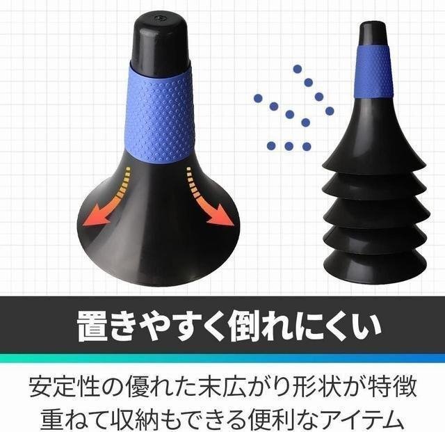 スポーツトレーニング用 リップコーン PP製 倒れにくい ラバーグリップ 省スペース収納 バスケ サッカー 10本セット