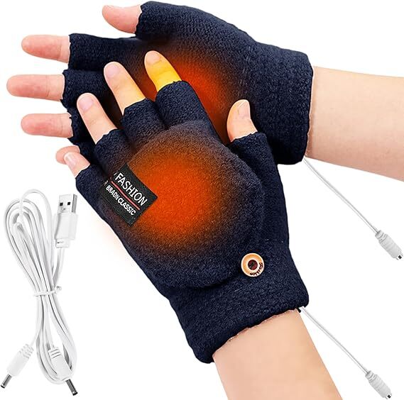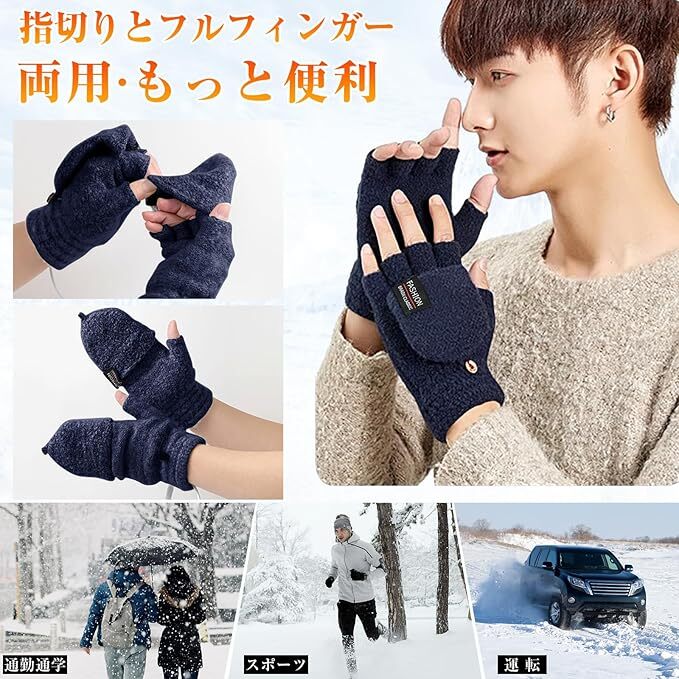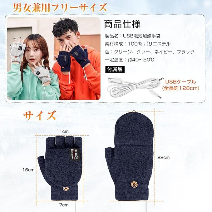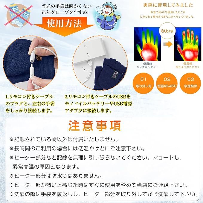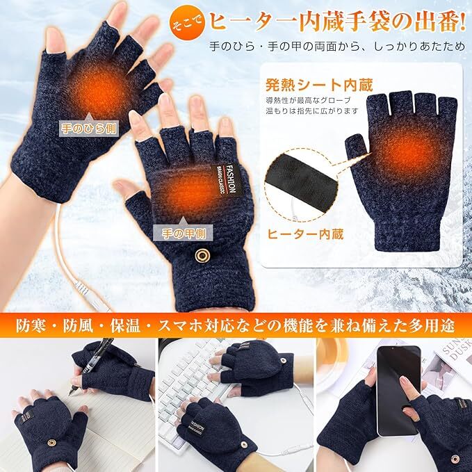 冬用速暖手袋 手袋 電熱グローブ ネイビー 指切り カバー 2way グローブ USB給電式 電熱手袋 防寒手袋 男女兼用 保温 防寒 パソコン作業