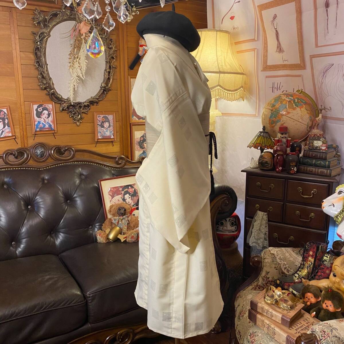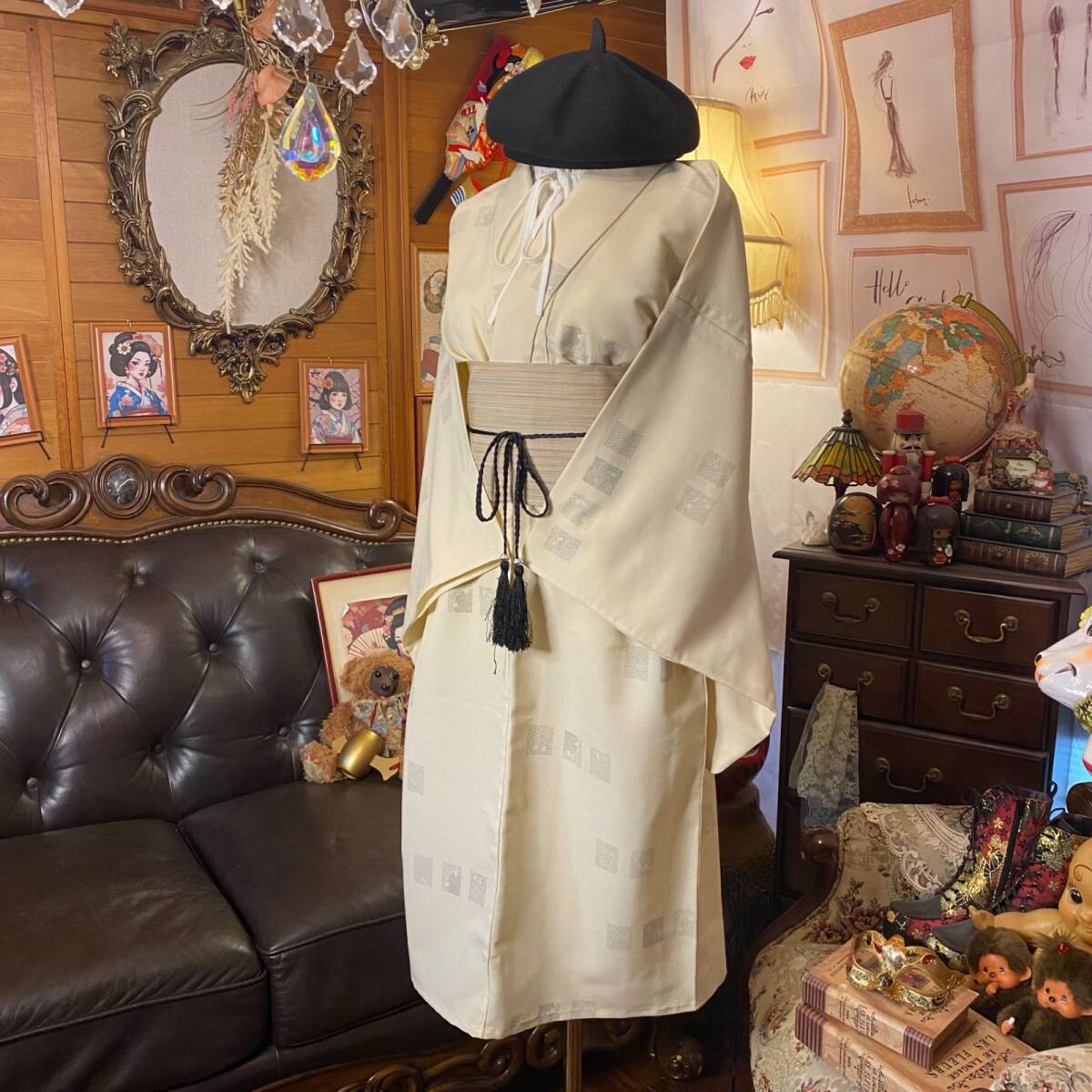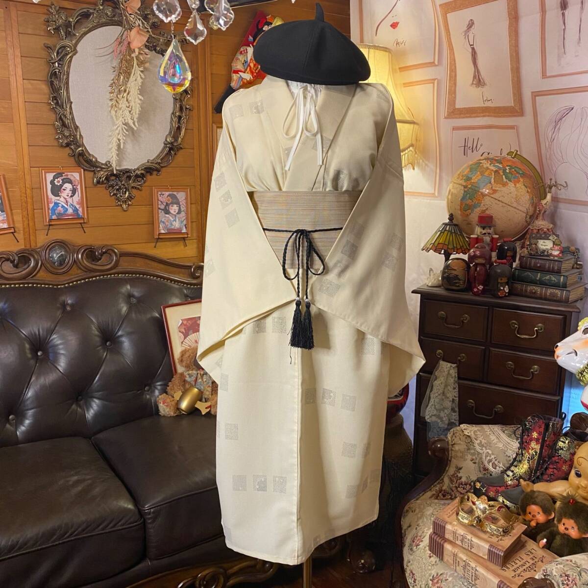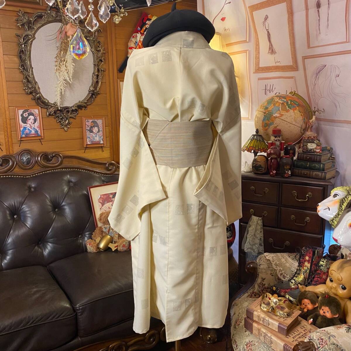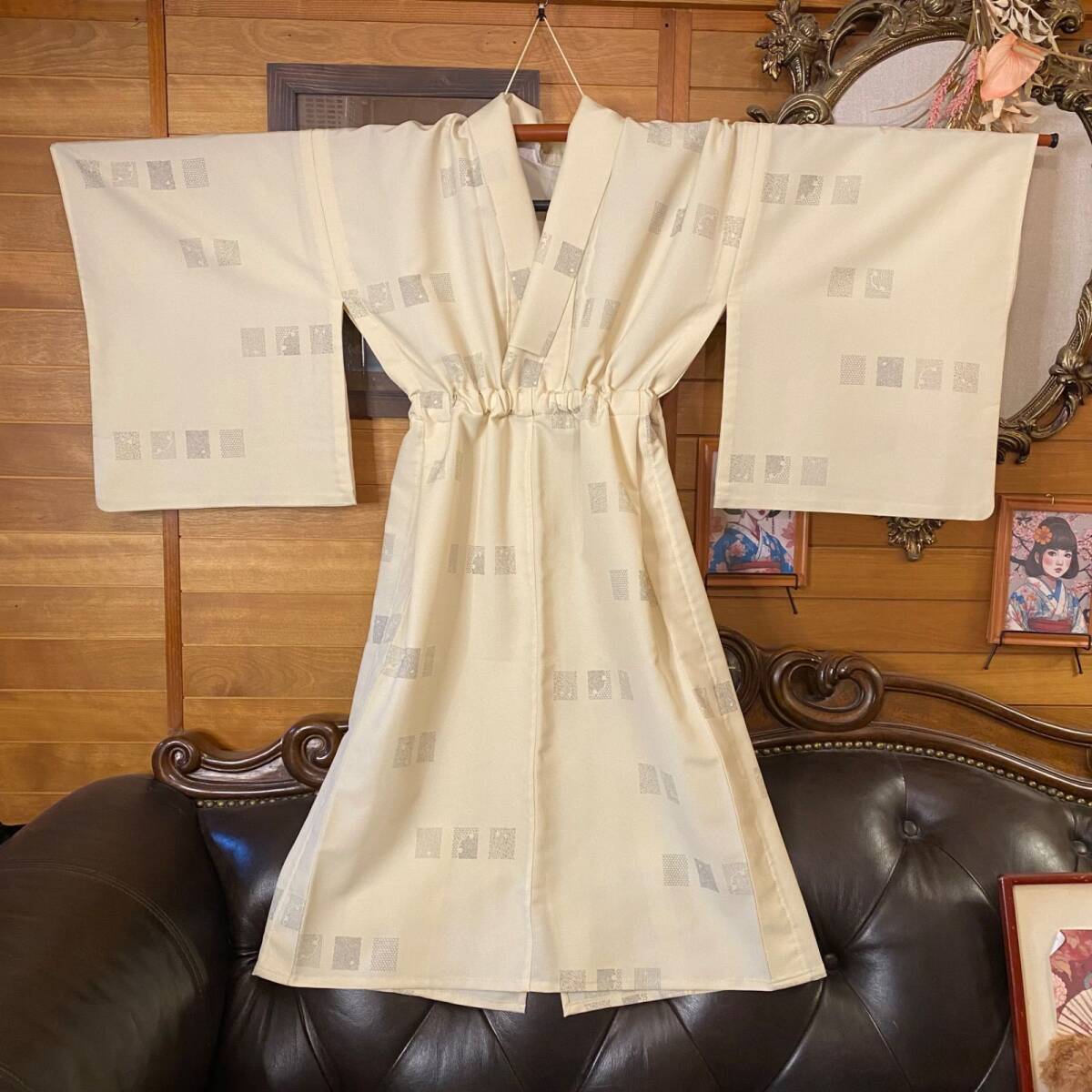 やわらかな光を含んだような、生成り色の着物地を使用したリメイクワンピース。