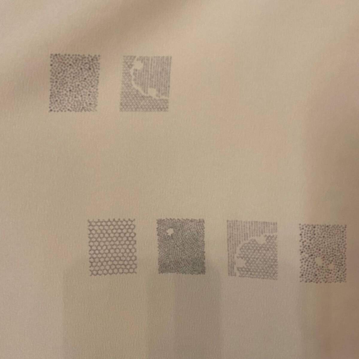 柄はそれぞれ細やかなドットや線で構成されており、近づくほどにその繊細さが際立ちます。