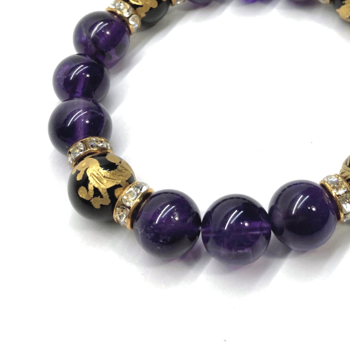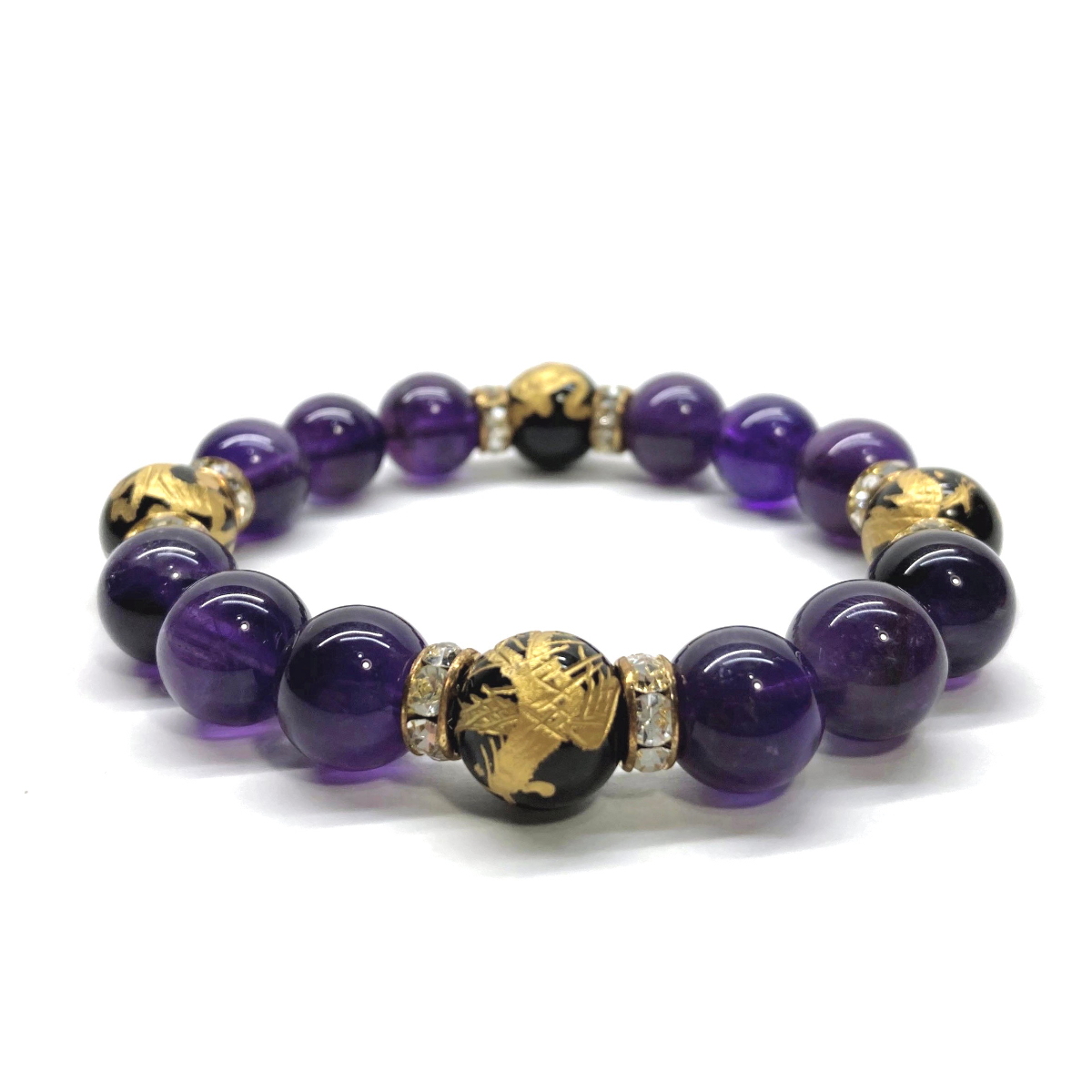 四神獣金彫オニキス×アメジスト 12mm パワーストーン ブレスレット天然石 青龍 白虎 玄武 朱雀 運気上昇 開運 金運 お守り 四神相応 G