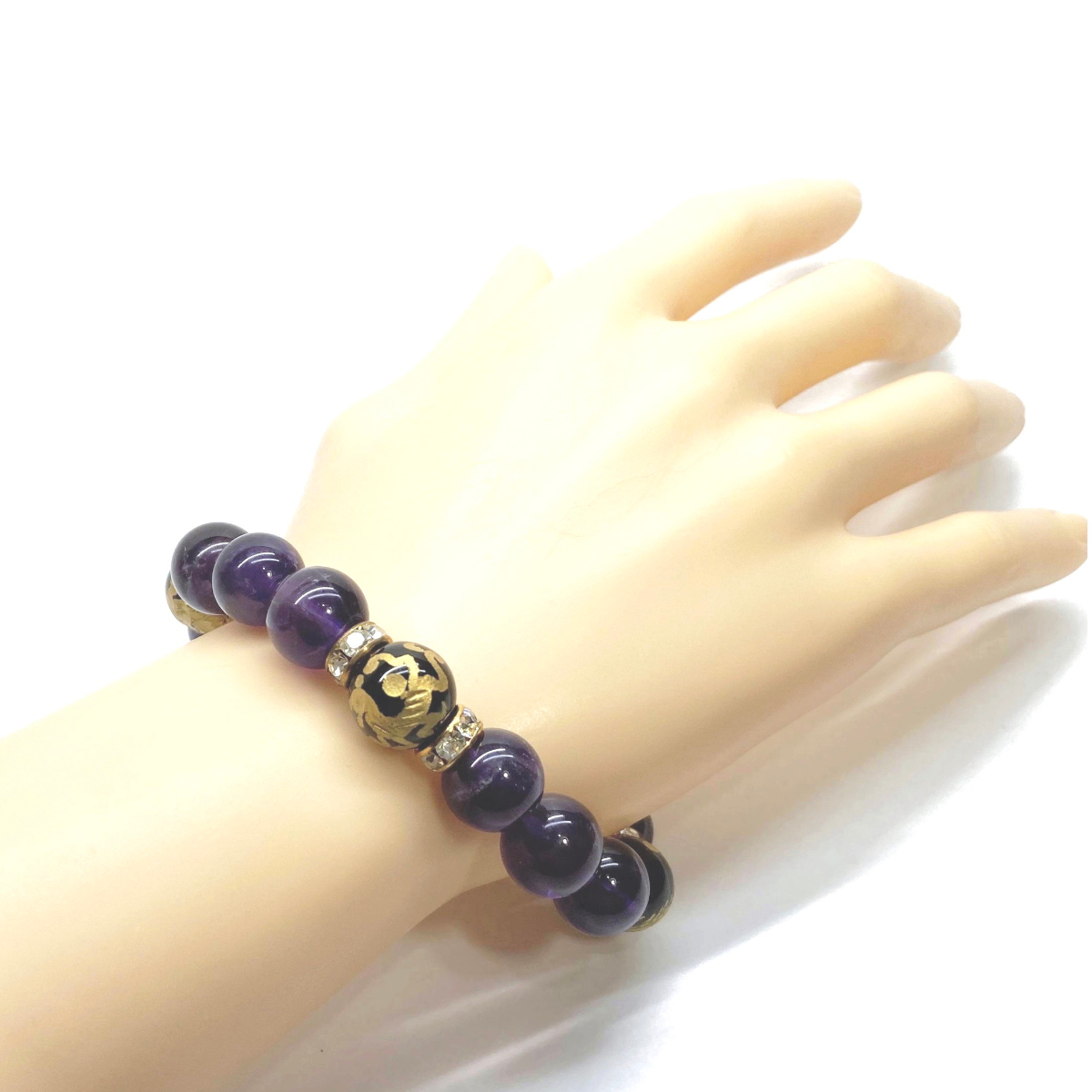 こちらは、四神獣金彫オニキとアメジストを組み合わせたパワーストーンブレスレットです。四神獣は、中国の伝説で4つの方向(東西南北)を守護する神聖な神。四神獣、厄災から身を守り、多くの運気を呼び込むと言われております。石大きさは程よくインパクトのある12mm玉で内周 約17cmです。 数に限りがございますので気になる方はお早めにどうぞ。