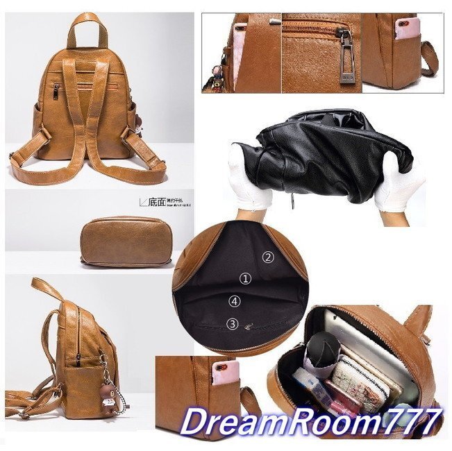 classic 型崩れ防止 レザー リュック BAG 【ブラック】ハンドバッグ ショルダーバッグ 海外セレブ K-064-1