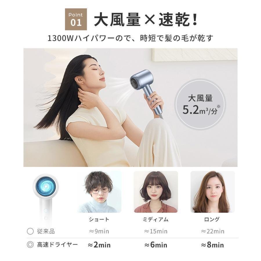 ヘアドライヤー 速乾 大風量 冷熱風 4段階調節 高級 2億マイナスイオン 高速 超軽量 美髪 静音 過熱保護 旅行 持ち運び便利 zhw031.3