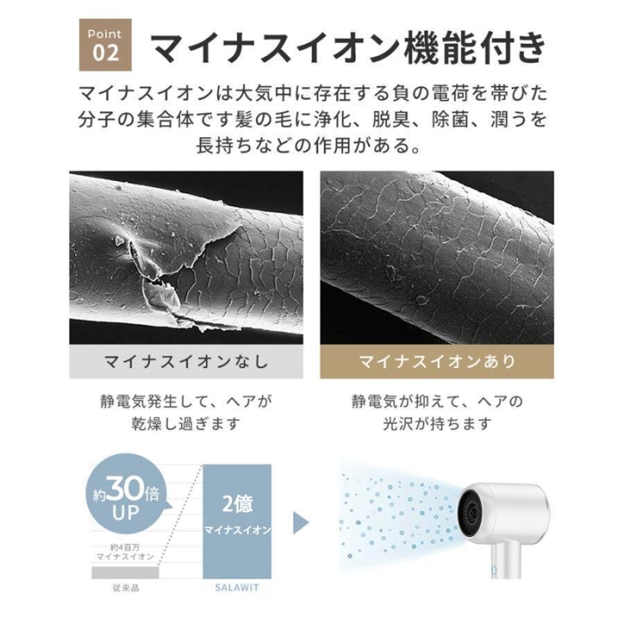 ◆マイナスイオンで、もっと美しくマイナスイオンをしっかり髪に届け、潤いとツヤのある美しい髪に仕上げます。