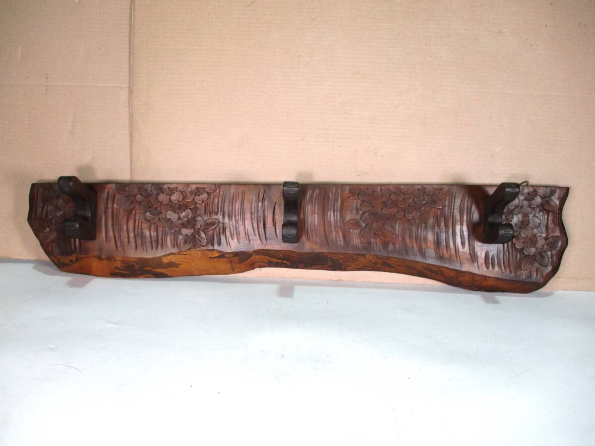 軽井沢彫 壁掛け ハンガー 無垢材 桜 彫刻 伝統工芸 重量 約1.22kg