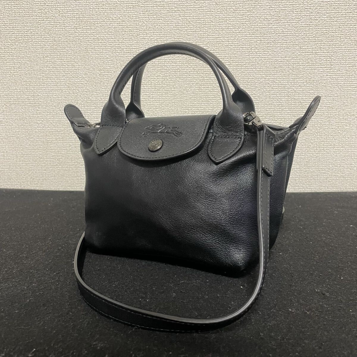 1円スタート! 使用僅か 極美品 LONGCHAMP ロンシャン 2wayバッグ XS プリアージュ レザー ブラック ショルダーバッグ ハンドバッグ