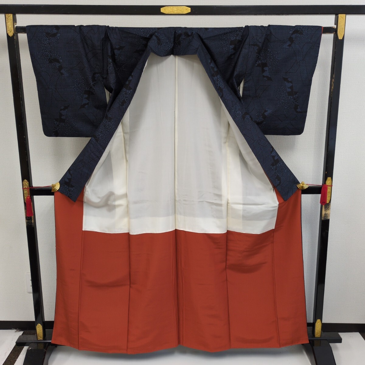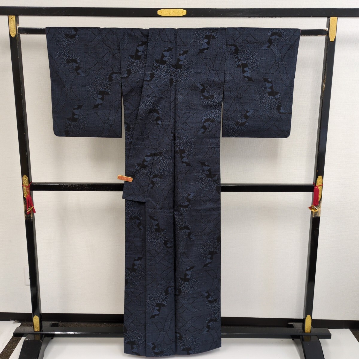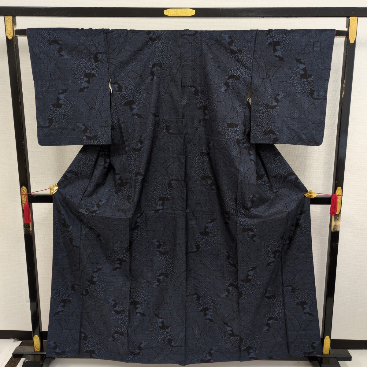 【楓】本場大島紬 正絹 泥藍染め 一元式 柳田武造 粋な絣 袷 着物 KK-1845