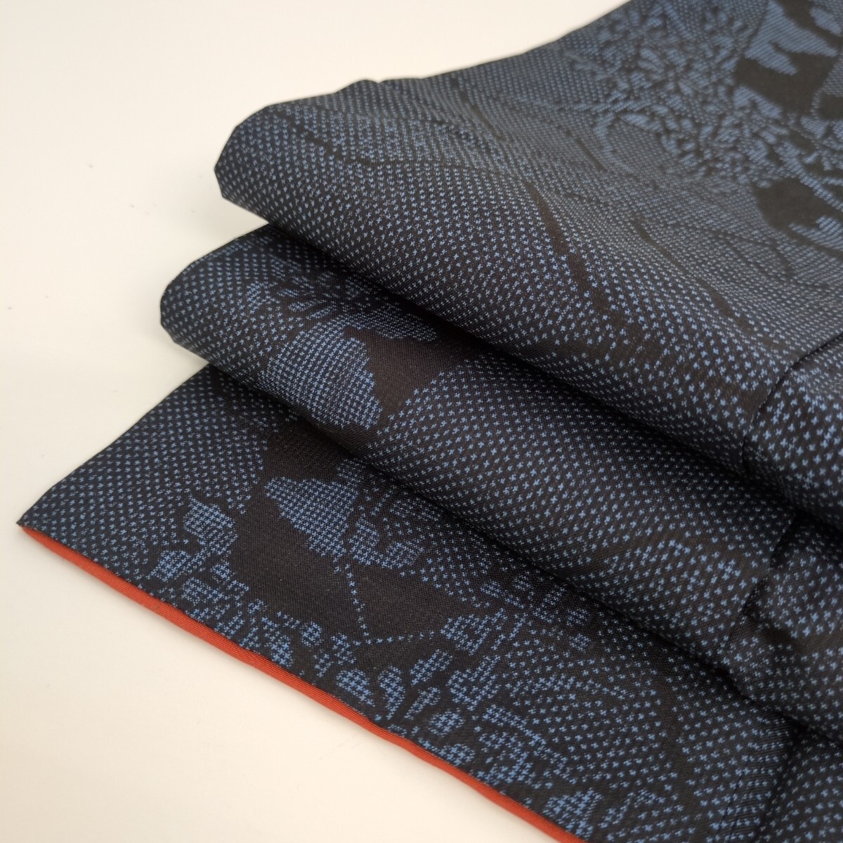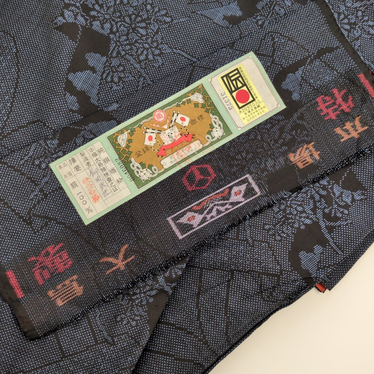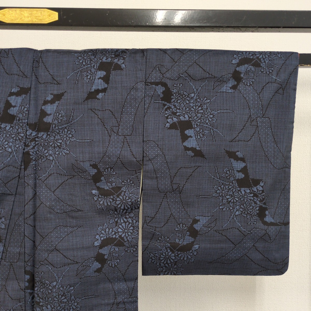 【楓】本場大島紬 正絹 泥藍染め 一元式 柳田武造 粋な絣 袷 着物 KK-1845