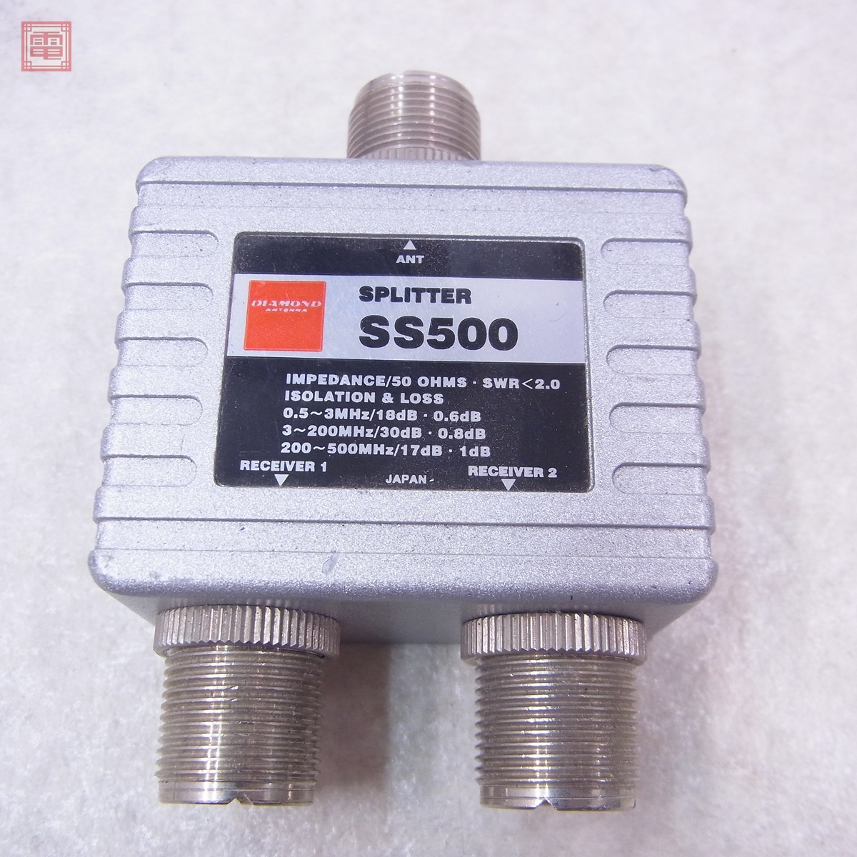 第一電波 SS500 受信用分配器 0.5〜500MHz スプリッター 混合器 SS-500 ■<状態> ・中古品の為キズ、汚れ等があります。 ・タバコ臭はありません。 ■写真のものが全てです。付属物の有無や状態については写真からご判断ください。 ■付属物については細かいチェックはしておりませんので、万が一、欠品があったり余計な物が入っていたとしてもご了承ください。 ■商品到着後、当店の保証期間中は、商品及び箱や取説、付属品などを1つでも廃棄や破損をしないようにお願い致します。廃棄や破損をした場合、商品に問題があった場合でも対応や返金などの対処ができなくなります。 ■商品によりますが、発売されてから10年以上経過している中古品である事をご理解頂いた上でご入札をお願い致します。なお、新品や美品、また特記事項がある場合は別途明記します。 | |||