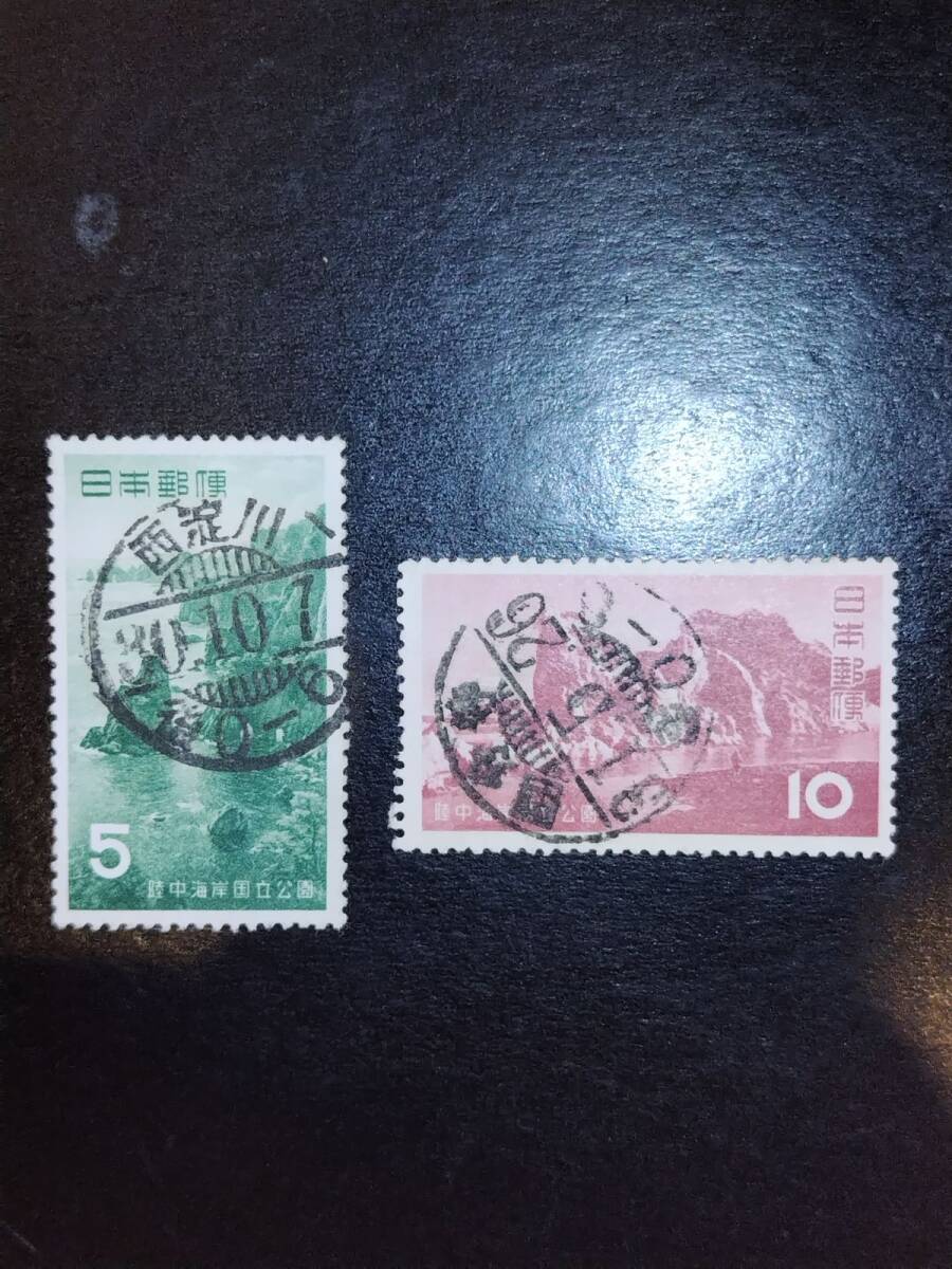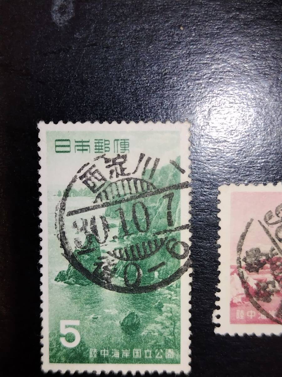 収集家の処分品!第1次国立公園陸中海岸2種使用済ヒンジ跡あり 満月印・和文印・西淀川30.10.7 国分寺31.5.26です。