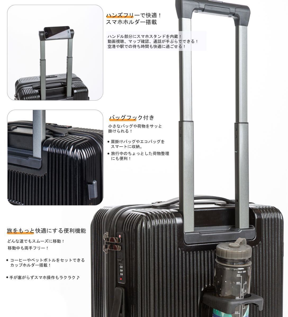 スーツケース キャリーケース フロントオープン 機内持ち込み 軽量 キャリーバッグ ストッパー カップホルダー付き ホワイト