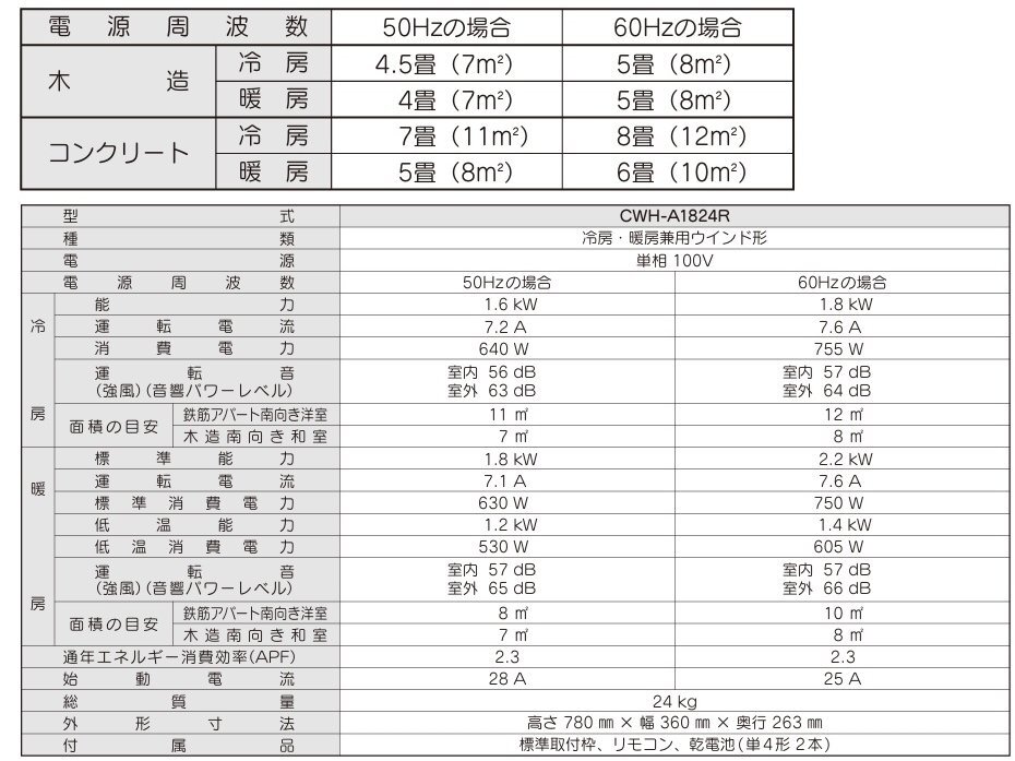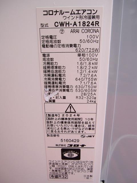 商品名 コロナ ルームエアコン 窓用エアコン・枠付 CWH-A1824R 4~8畳 冷暖兼用 2024年製 美品