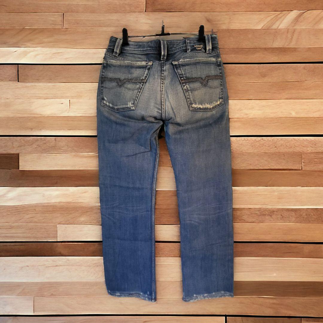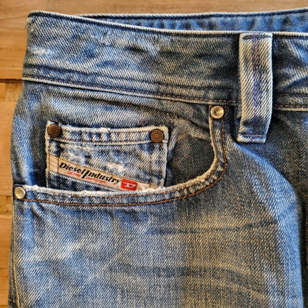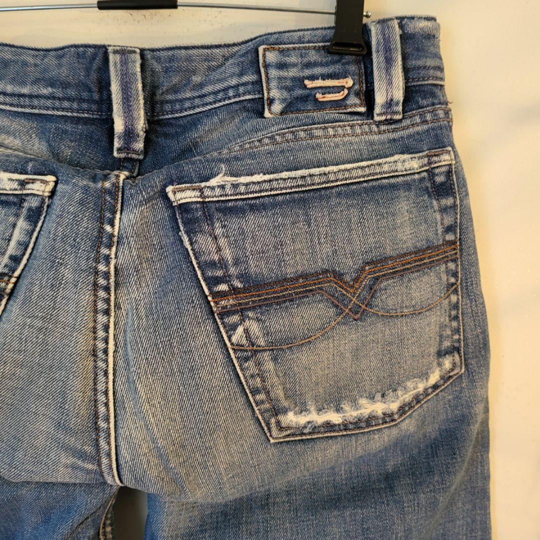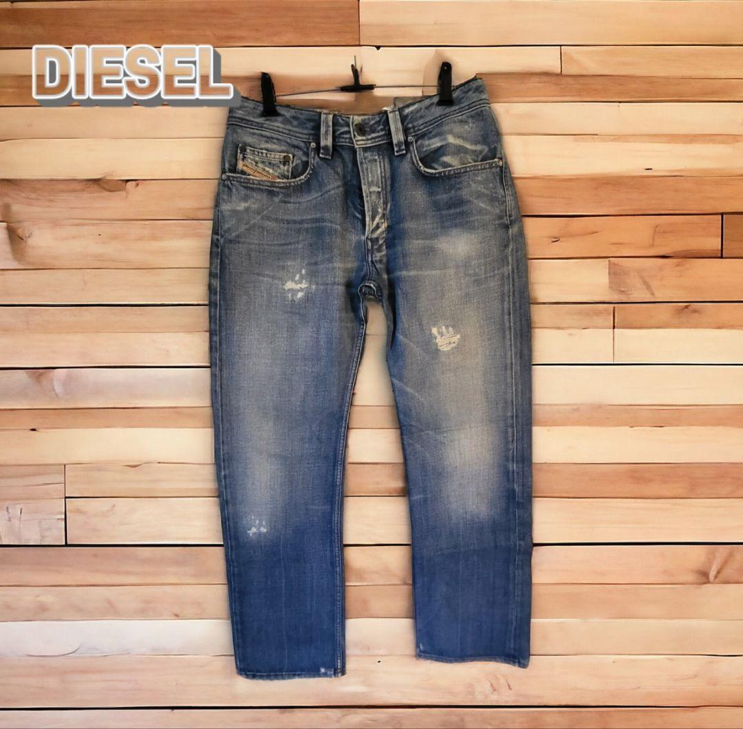 DIESEL(ディーゼル)のメンズデニムパンツは、ストレートなシルエットが特徴で、ダメージ加工が施されたブルーカラーが印象的です。