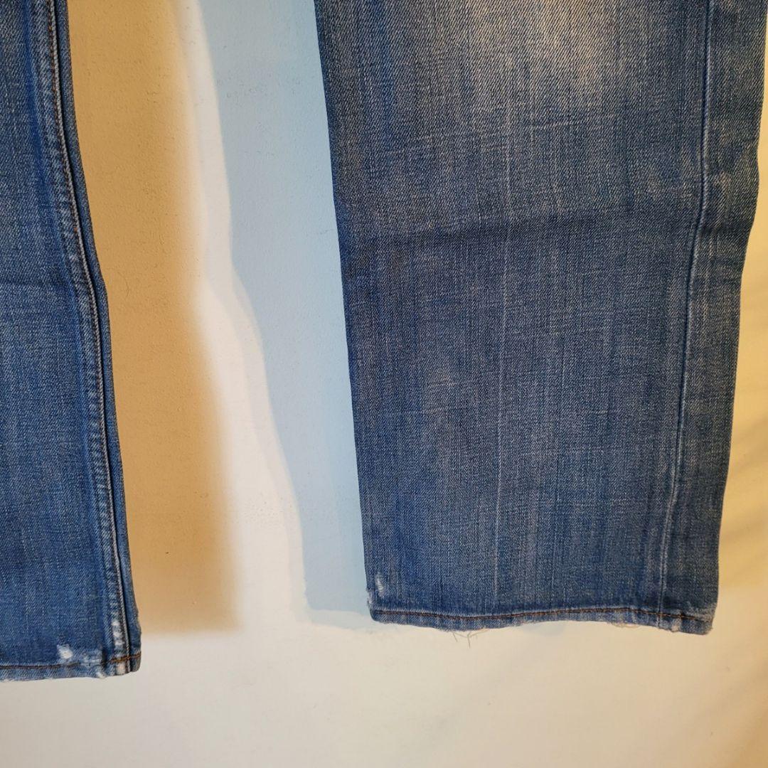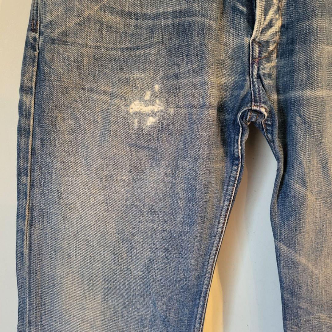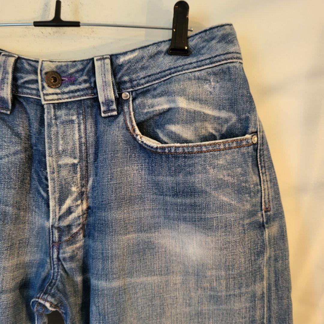 DIESEL(ディーゼル)のメンズデニムパンツは、ストレートなシルエットが特徴で、ダメージ加工が施されたブルーカラーが印象的です。