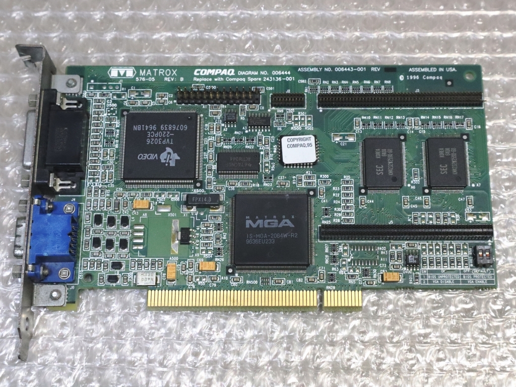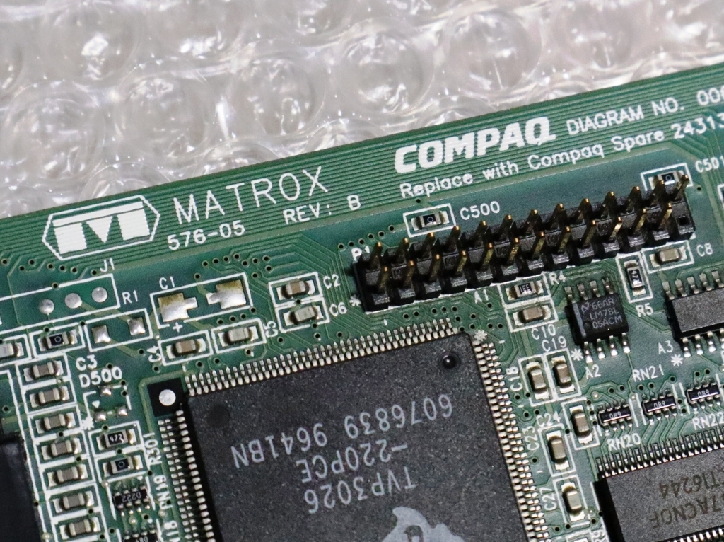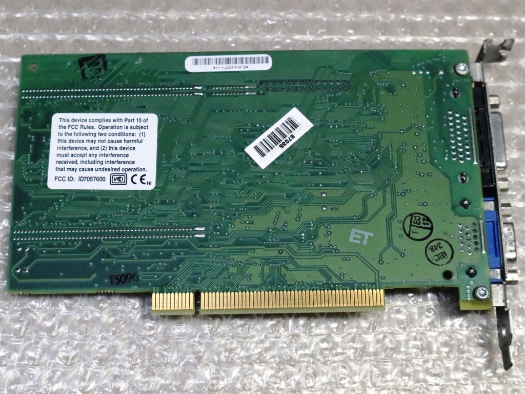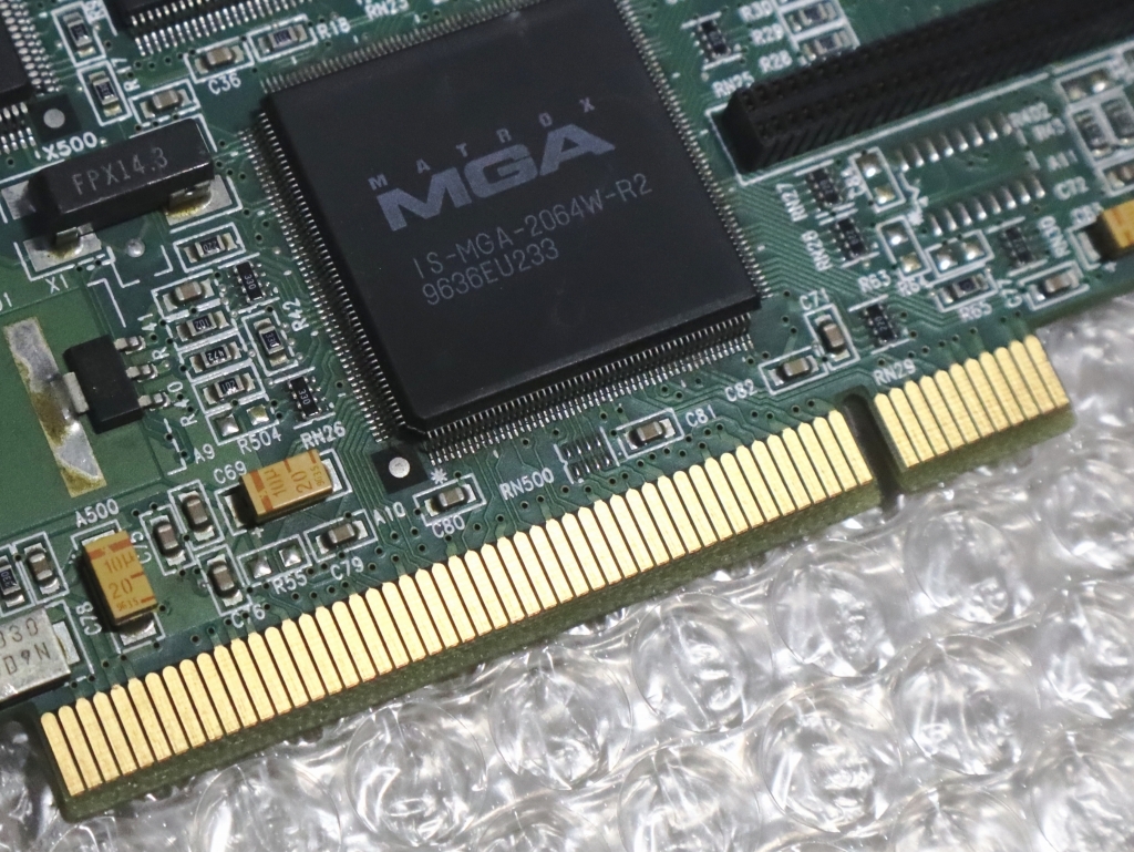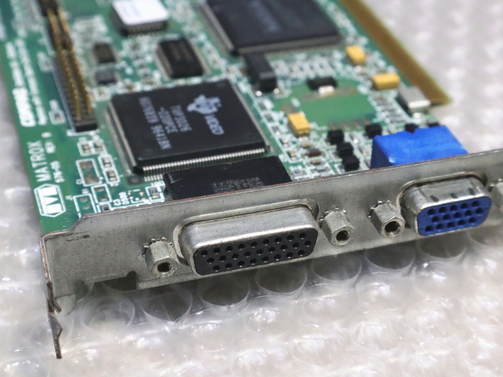 | 商品説明 | ご覧いただきありがとうございます。 写真のとおり PCI接続 Matrox Millennium (2MB) を出品します。 1998年頃でしたでしょうか、Celeron 300A +BH6 の頃に使った品と思います。押し入れの整理で出てきました。今では非常に貴重な(?) PCI接続で、メモリがなんと2MBのようです。GPU-Zを動かしてみたかったのですが、PCIスロットが付いたマザーでは Windows 7もインストールできず残念です。 写真のようにWindows XP検証マシンで動作確認をしました。XPデフォルトでキチンと認識してくれました。流石はMatrox と言いましょうか、XPとしては珍しいことですね。 → ご参考① PCI Matrox Millennium → ご参考② Matrox Millennium 「Matroxは発色が・・・」などとは遠い昔ですが、当時のマザーや478時代のマシンをお使いの方にいかがでしょうか。1桁メガバイトのグラフィックRAMの世界をお楽しみください。(^^; 検討をよろしくお願いします。 |