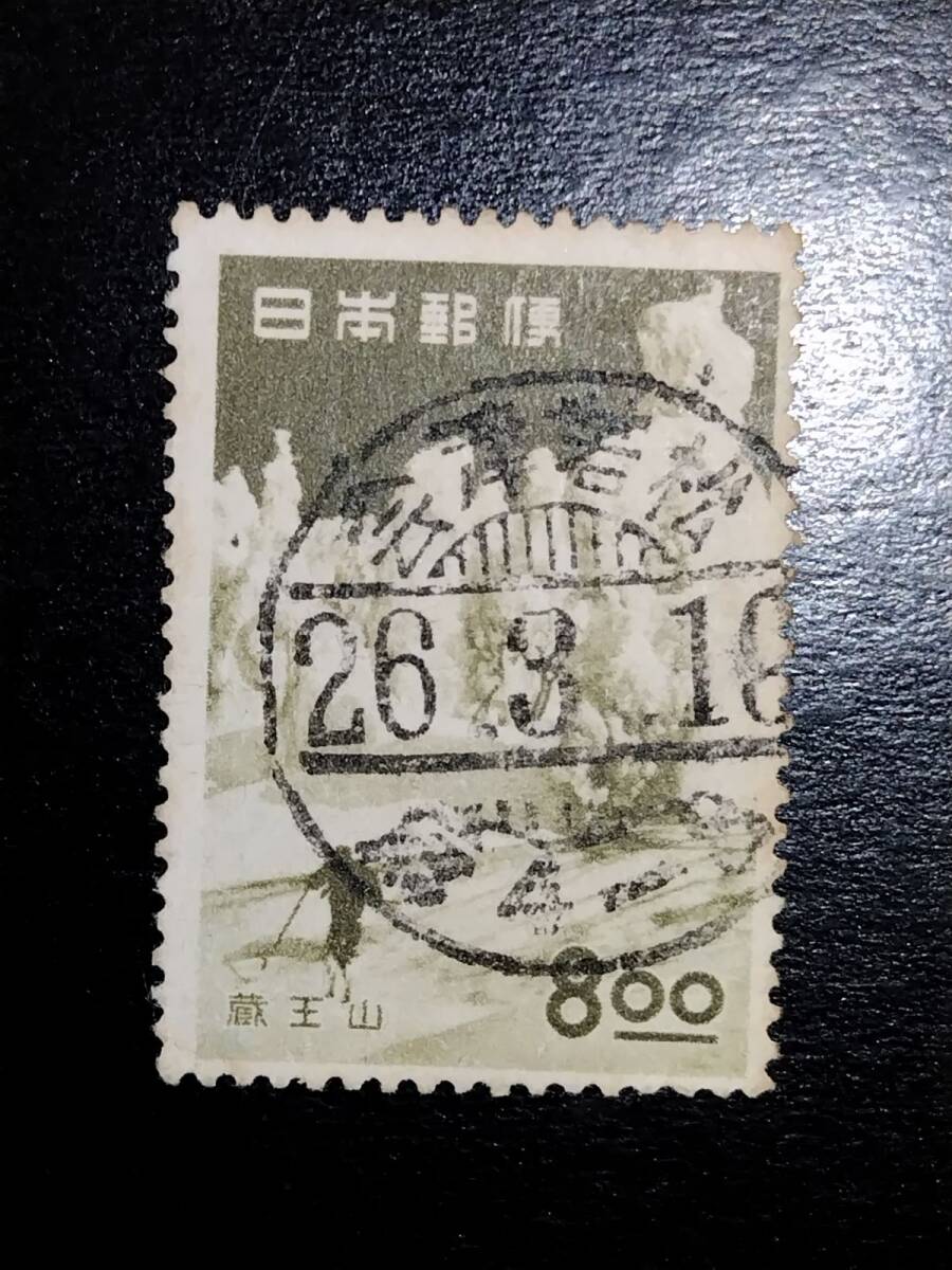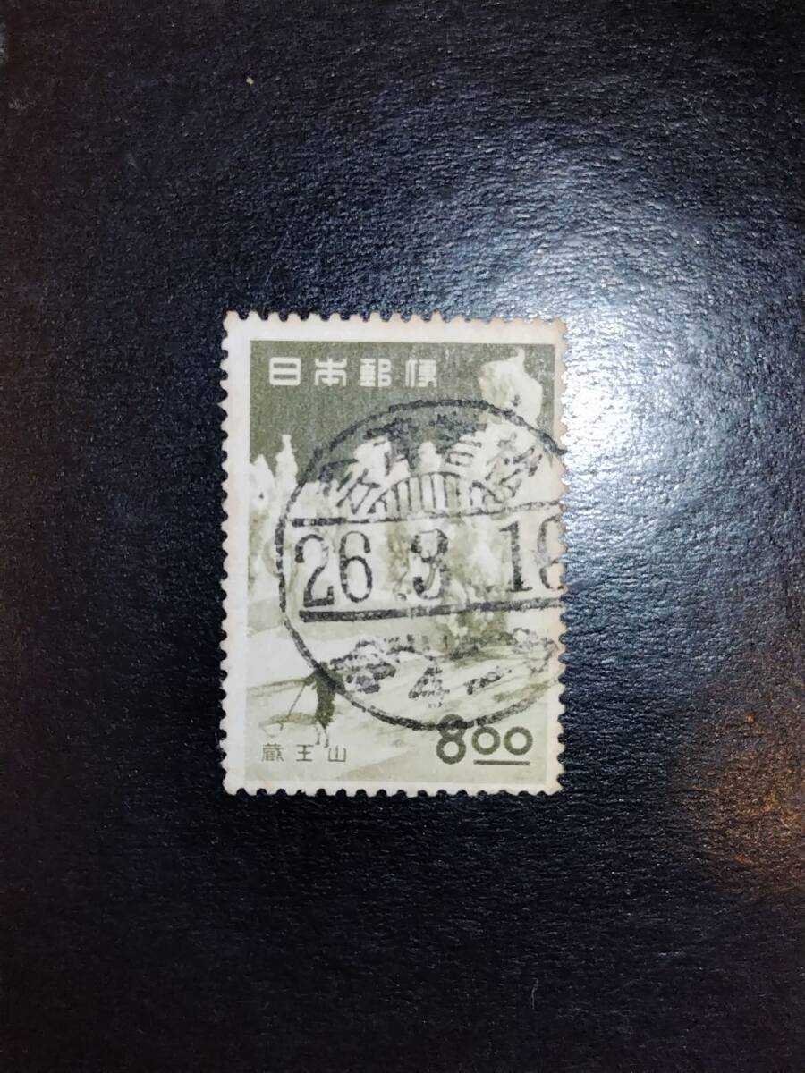収集家の処分品!観光地百選蔵王山8円使用済ヒンジ跡あり 和文印満月印 会津若松26.3.19