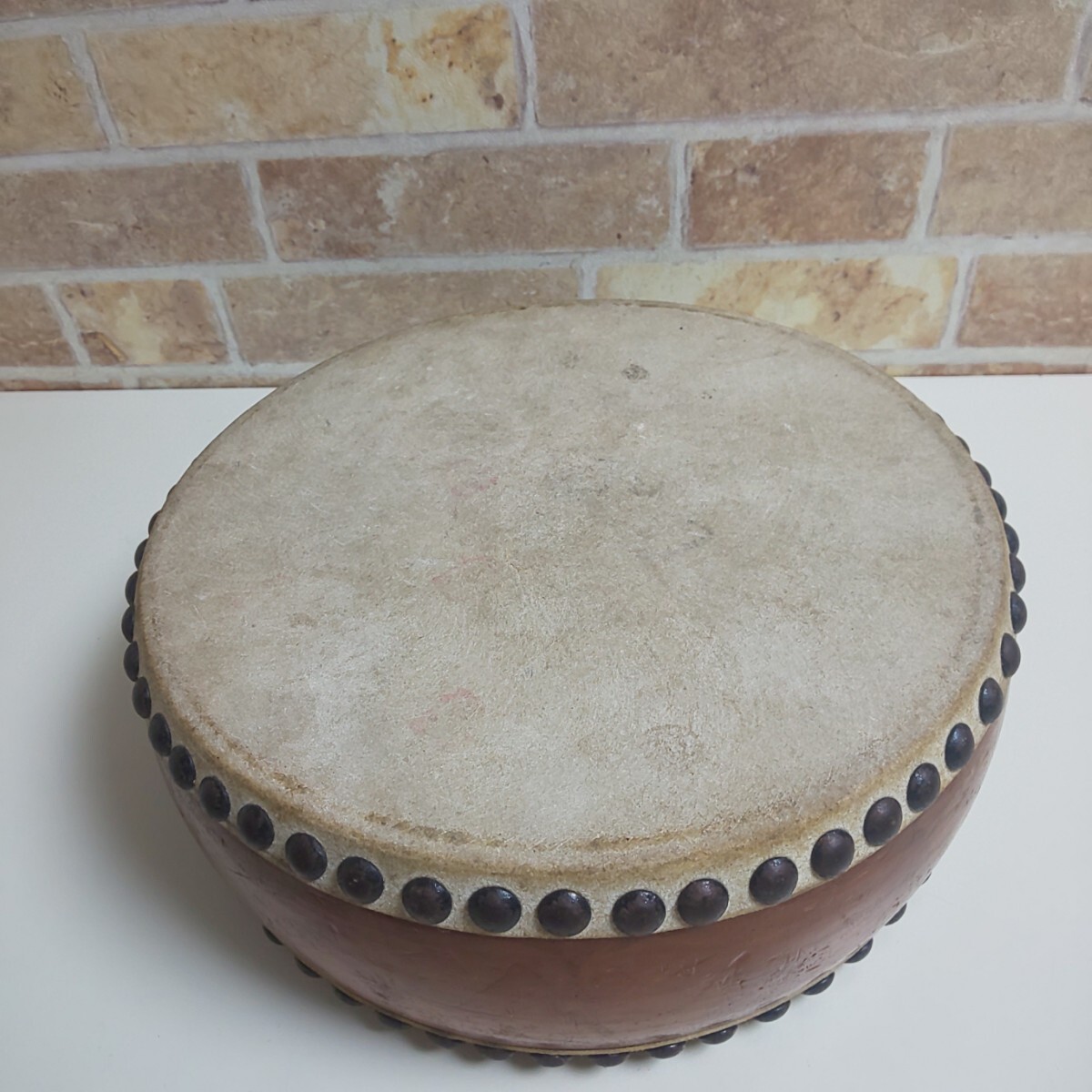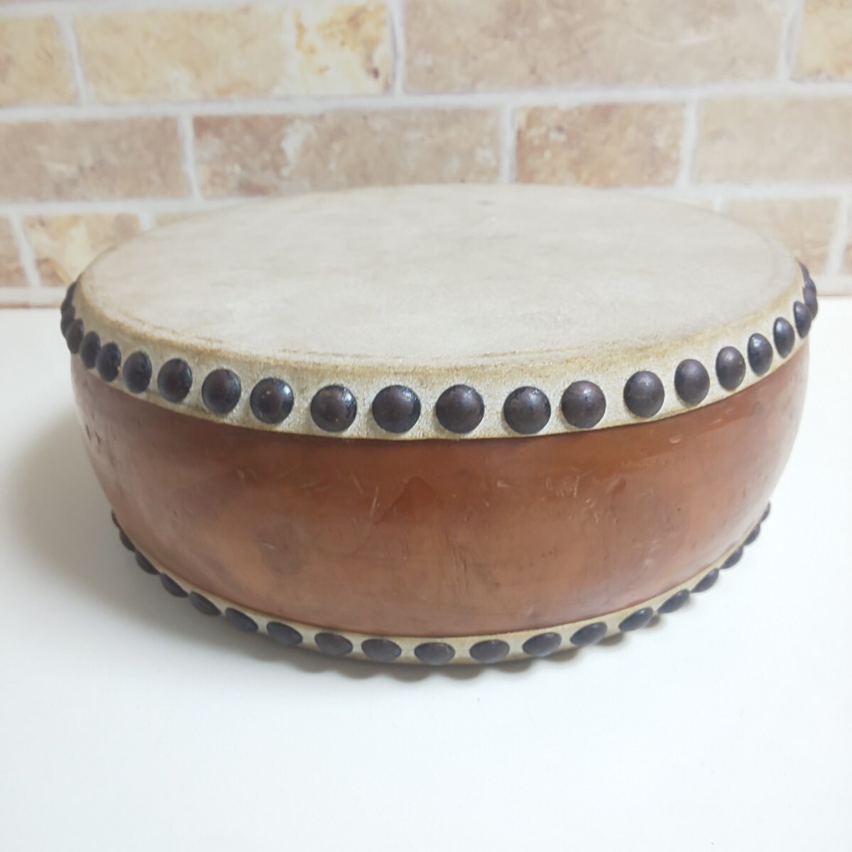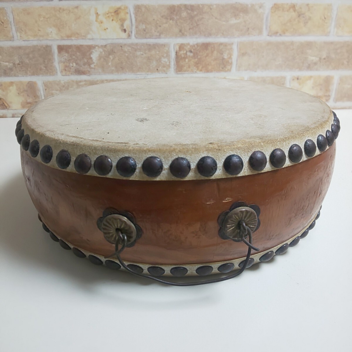 こちらの品物味わい深い手持ちの和太鼓になります。