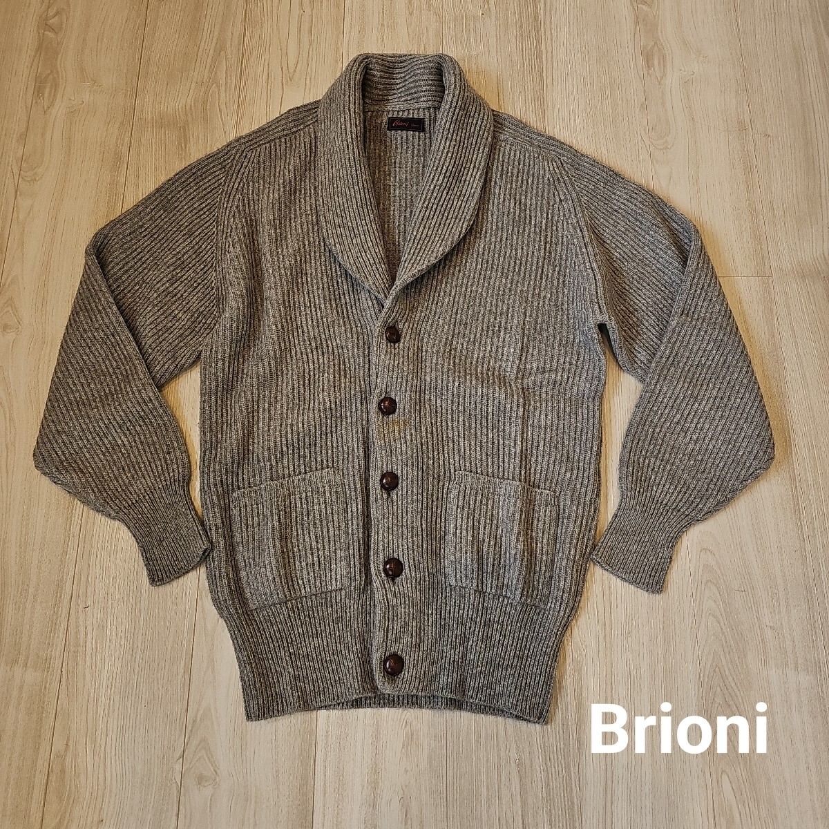 Brioni ブリオーニ カシミヤ  グレー ショールカラー カーディガン シミアリ ボタン ポケット made in Scotland ■1102mar12
