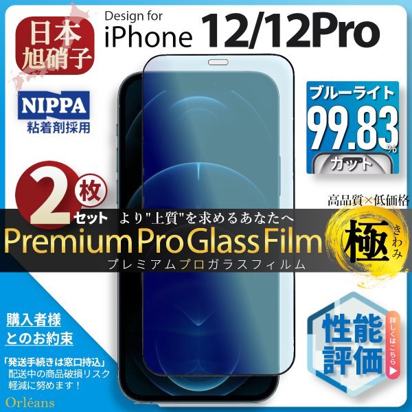iPhone 12 iPhone 12 Pro ブルーライトカット 強化ガラスフィルム 超得2セット 旭硝子 全面保護 自動吸着 保護フィルム 液晶保護フィルム