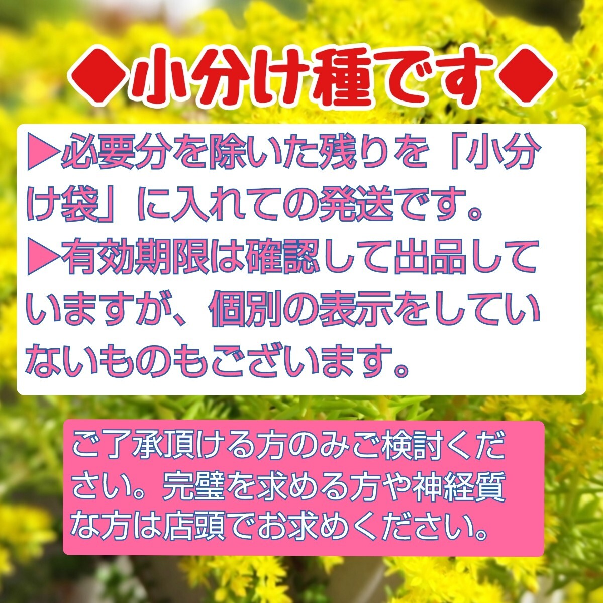 ◆◆小分け出品の為、説明書やコピー、種袋は付属しません。未使用のファスナー付袋にいれ、必要に応じてクッション材で包みます。硬い種はクッション材は使用しません。資材高騰のためクッション材はリサイクル品も使用します。
