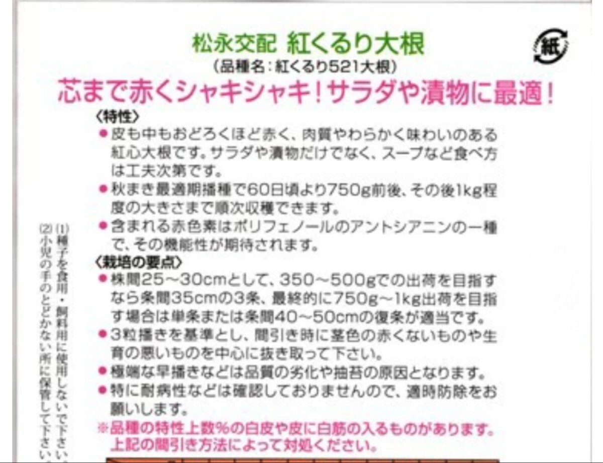 種は性質上100%の純度は望めません。また播種後の栽培条件、環境等によりその結果が異なる場合もございます。ご了承の上でお求めください。