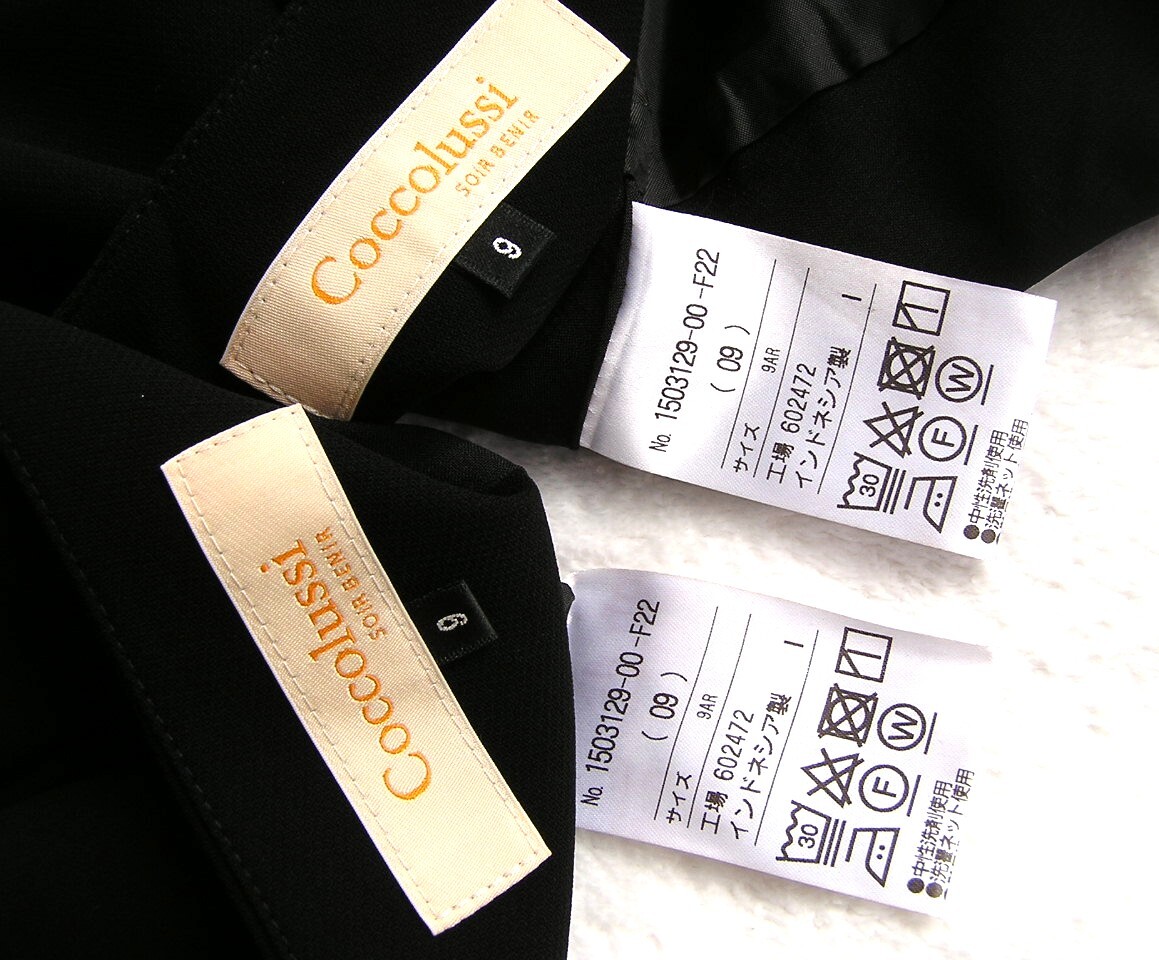 Coccolussi(ココラッシー)by 東京ソワールの黒のワンピースとジャケットのセットアップスーツです。
