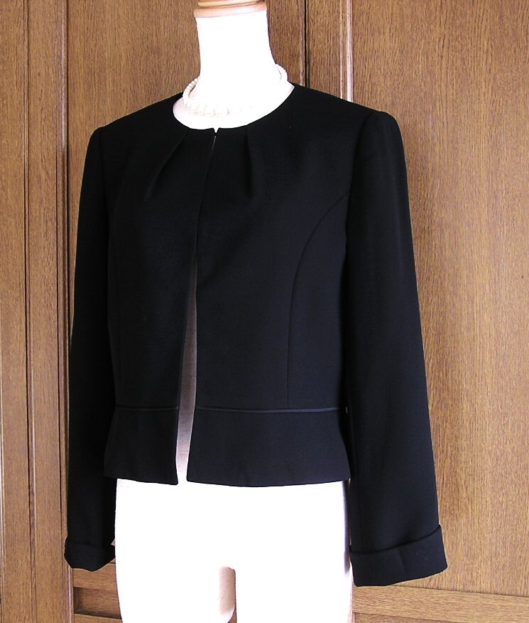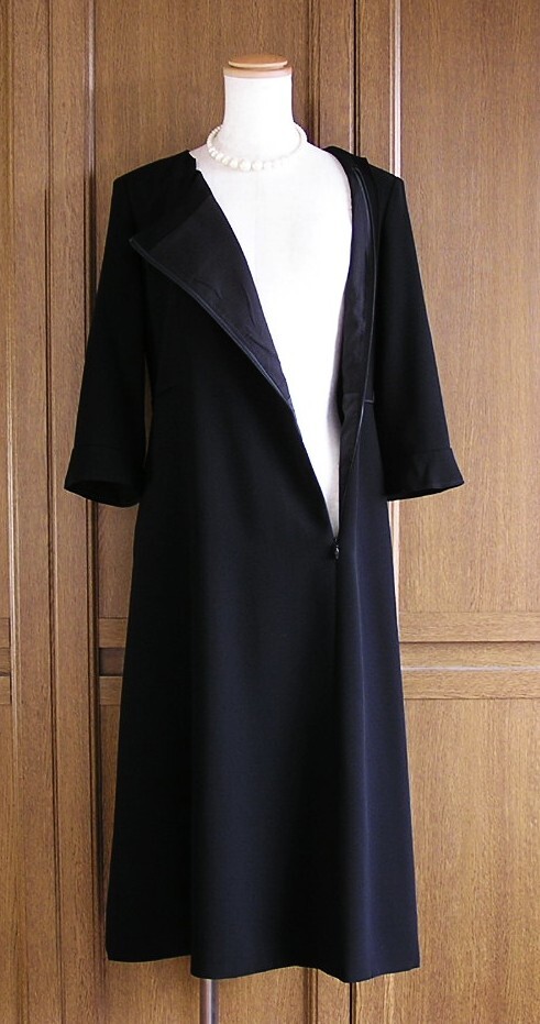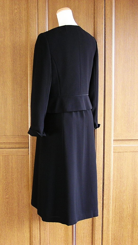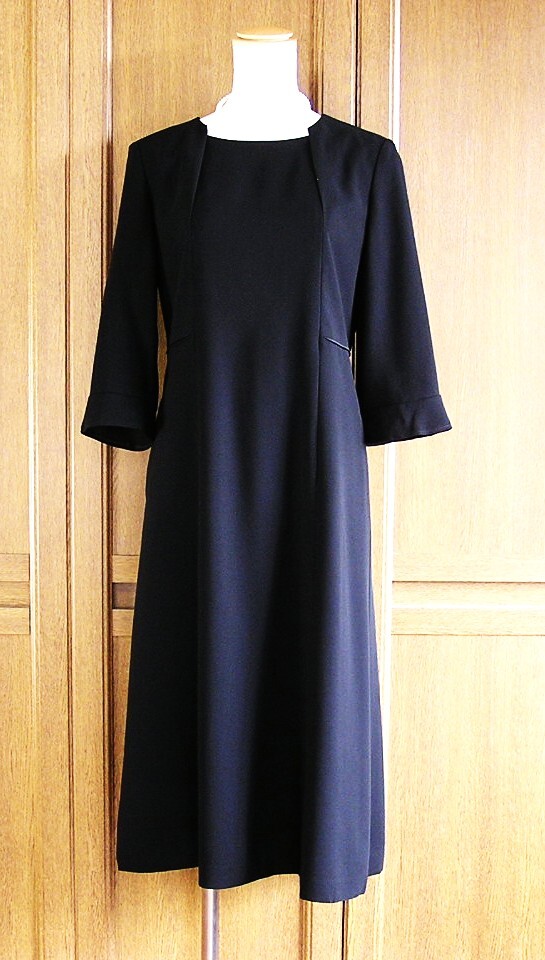 東京ソワール/Coccolussi/黒ワンピース 前ファスナー 7分袖 ポケット有×ジャケット/冠婚葬祭 スーツ/20~30代/9号/ブラックフォーマル