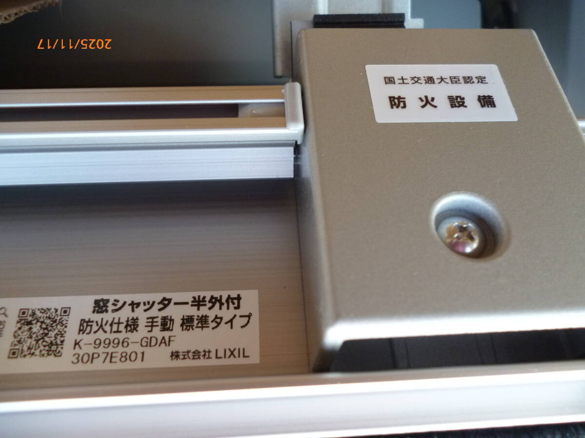 リクシル LIXIL 窓シャッター 半外付 防火仕様 手動シャッター イタリア シャッター リビング リフォーム 本体幅116cm 開梱品 本体のみ ③